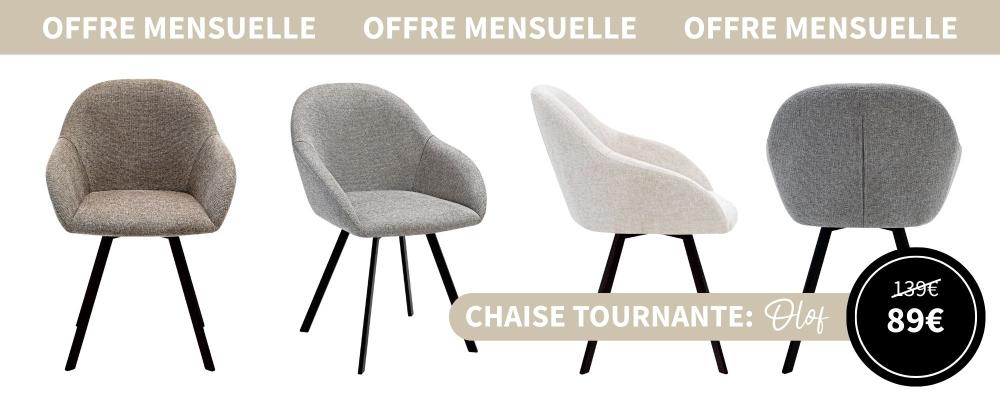 Chaque mois, chez KICK Collection, nous mettons l’un de nos meubles préférés à l’honneur. Ce mois-ci, c’est au tour d’un véritable incontournable : la chaise pivotante Olof.Cette chaise élégante et confortable est désormais disponible temporairement au prix de 89 € (au lieu de 139 €). Cela représente 50 € de réduction. Le moment idéal pour offrir une touche de style supplémentaire à votre intérieur !