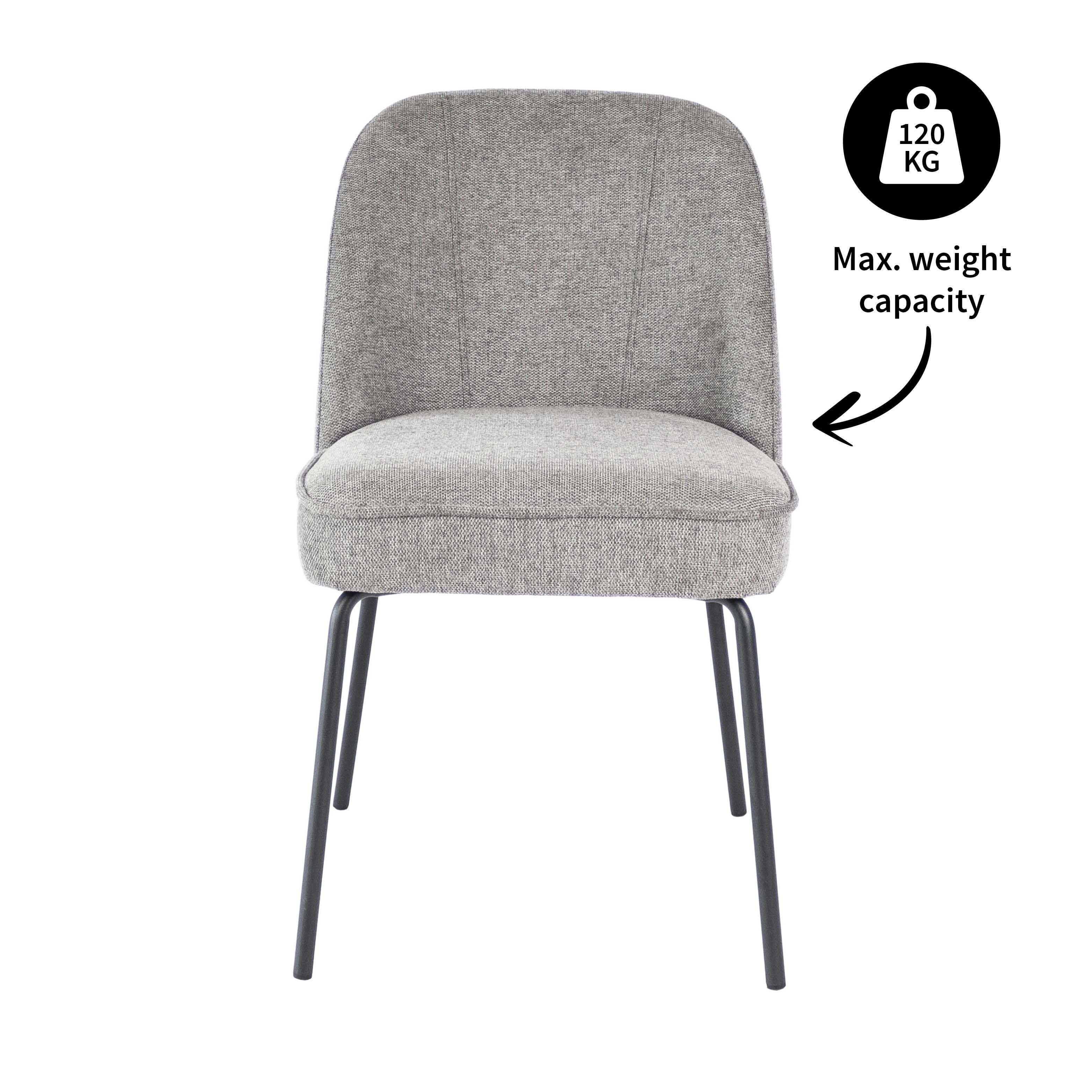 Voici la chaise de salle à manger Britt : où le style rencontre le confort. Avec son dossier arrondi, son assise richement rembourrée, son revêtement en tissu texturé et sa base en métal noir, Britt respire l'élégance. Détail supplémentaire, le dossier présente 2 coutures décoratives à l'avant. Disponible en plusieurs coloris.