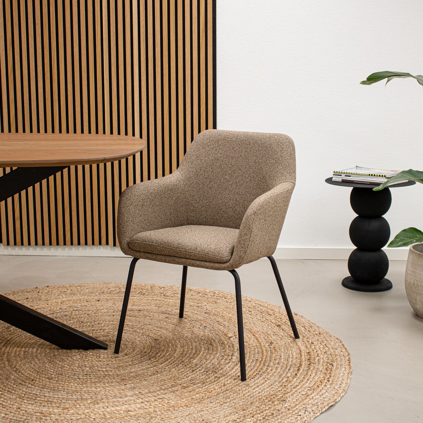 Voici la chaise de salle à manger Daan ! Daan est l'exemple parfait de l'élégance et du minimalisme. La chaise est enveloppée d'un tissu à la texture fine et au toucher chaleureux. L'assise est dotée d'un confortable coussin (fixe) et d'accoudoirs bien positionnés, ce qui maximise l'expérience d'assise. La structure métallique, élégante et robuste, prolonge l'assise et crée une belle unité visuelle. Daan est disponible en 4 couleurs froides. Mélangez-les pour obtenir le résultat Kick ultime !