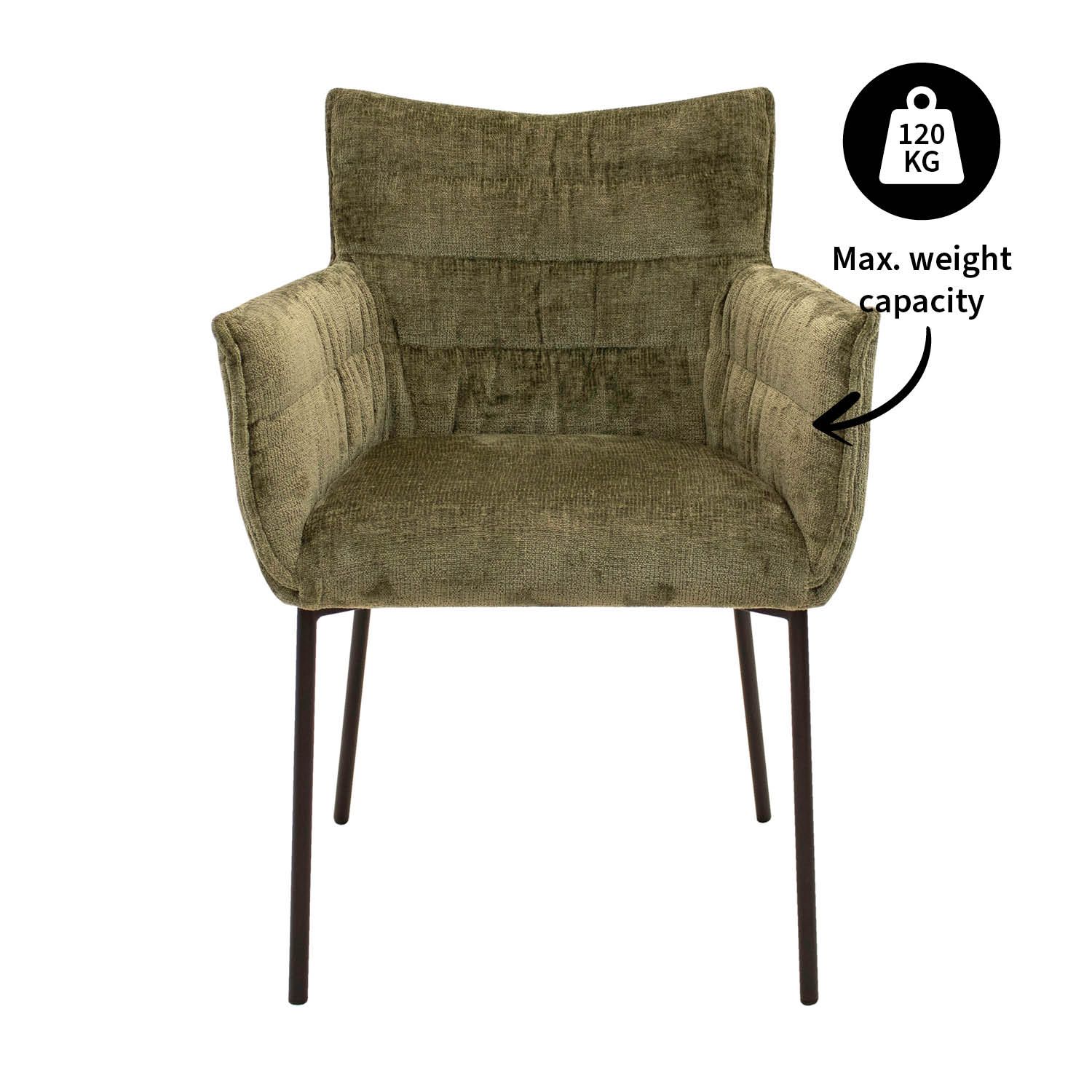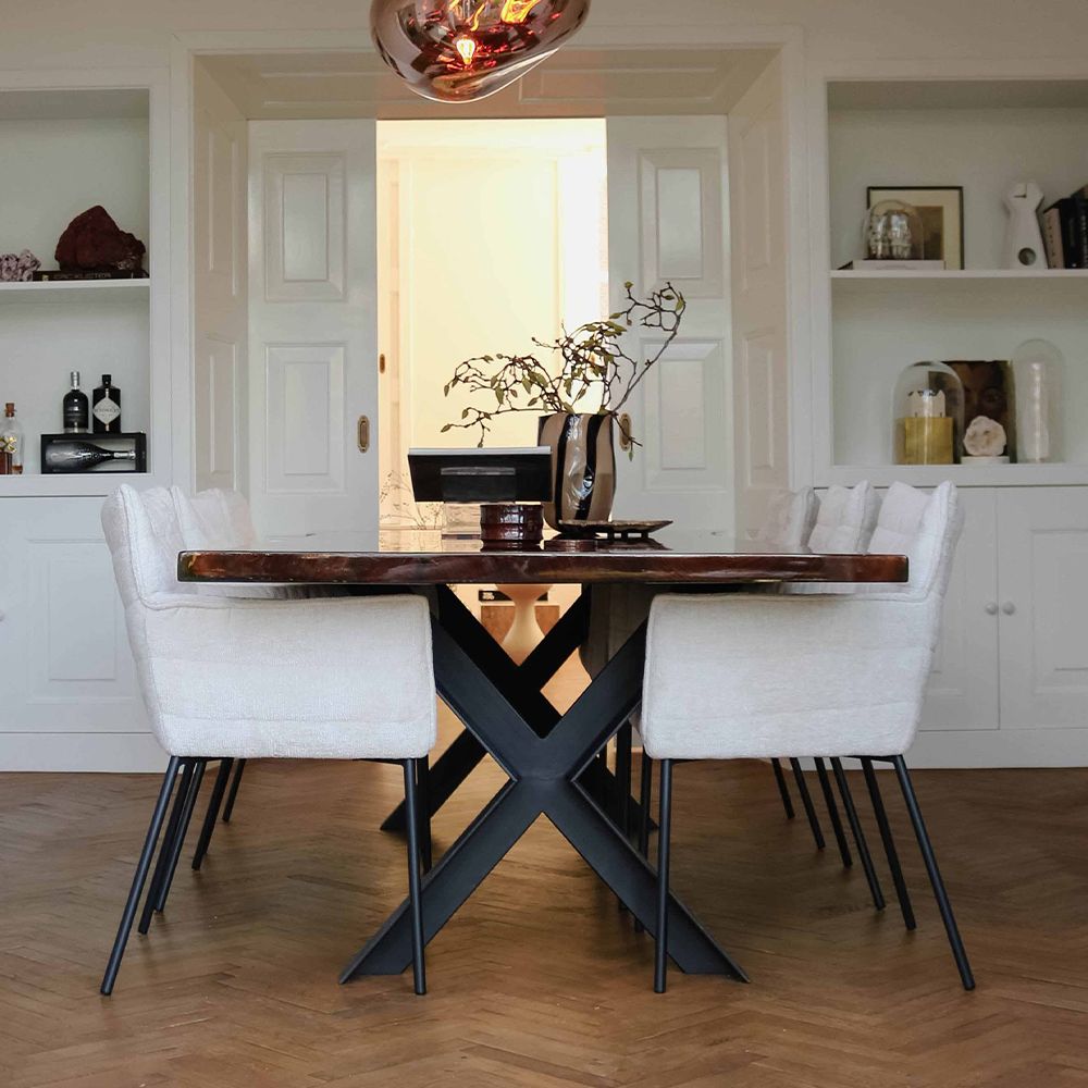 DITES BONJOUR À GOOS ! GOOS est revêtu d'un tissu Chenille doux, vous permettant de profiter d'une expérience d'assise agréable. La chenille est un tissu doux et moelleux connu pour son aspect et sa texture luxueux. La structure est en métal et se pare d'une élégante couleur noire. Cette chaise de salle à manger polyvalente est disponible en plusieurs coloris, afin que vous puissiez trouver l'accord parfait avec votre intérieur.