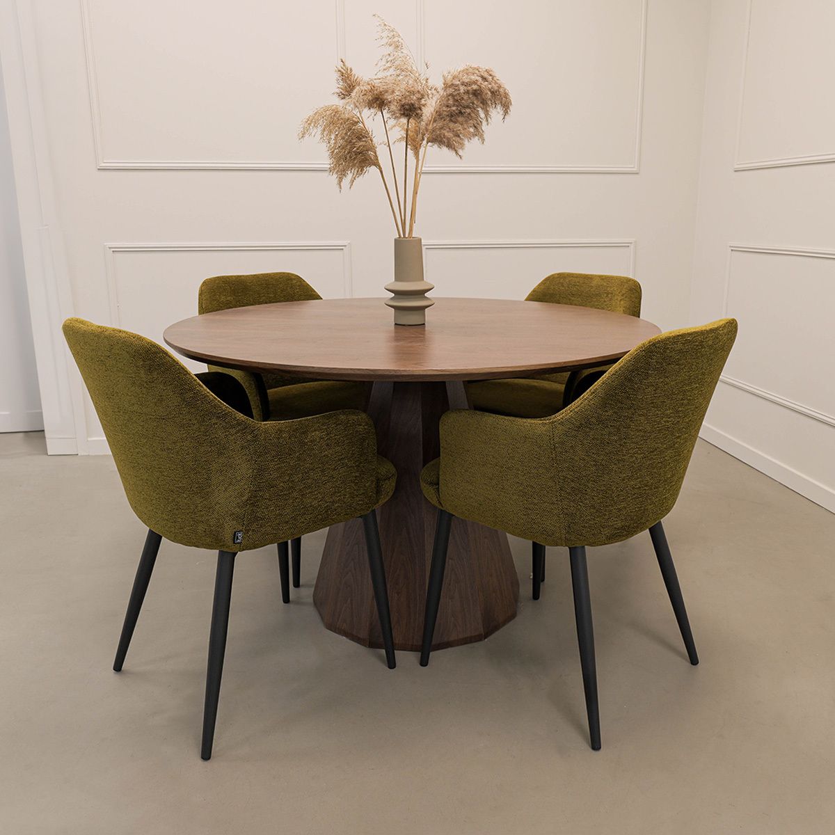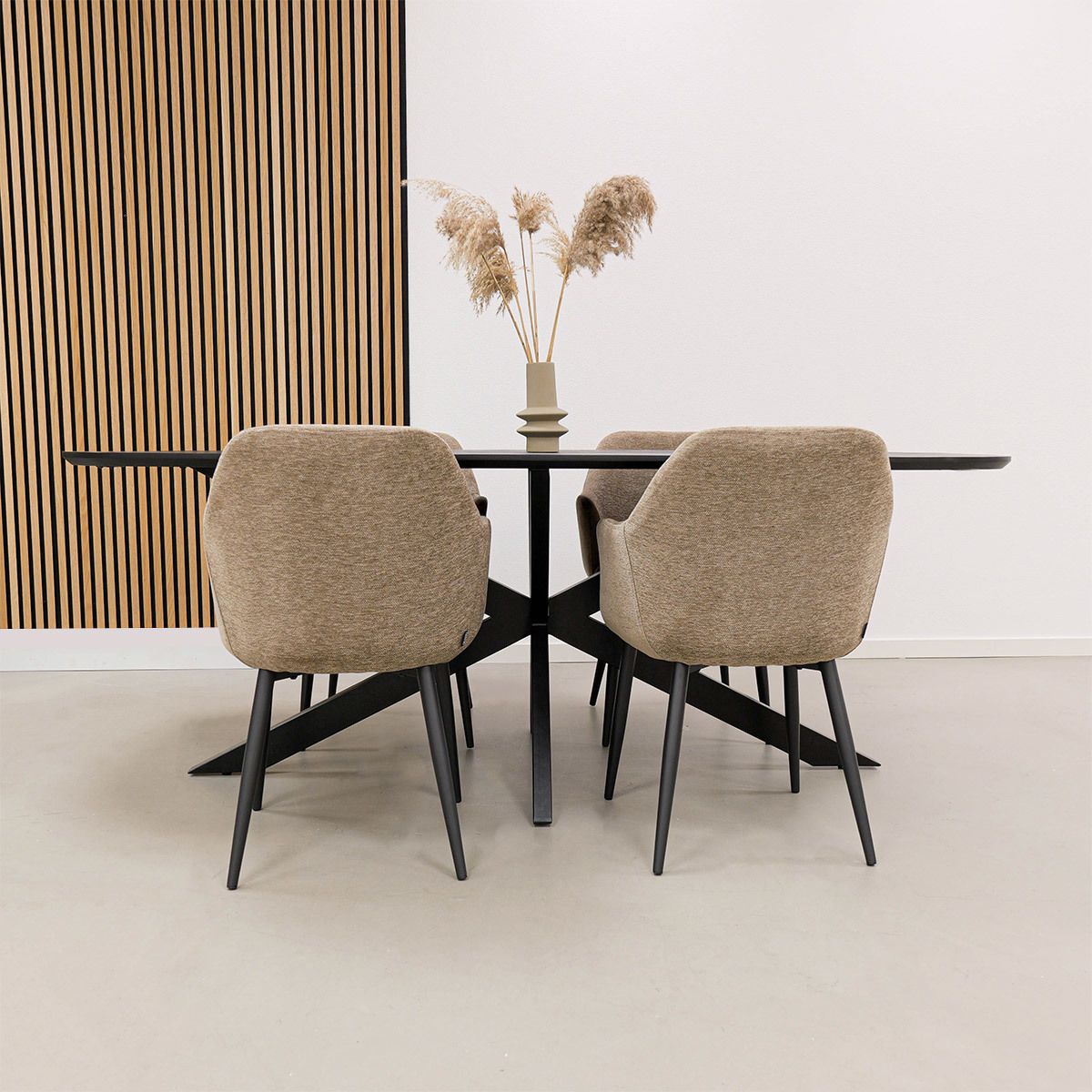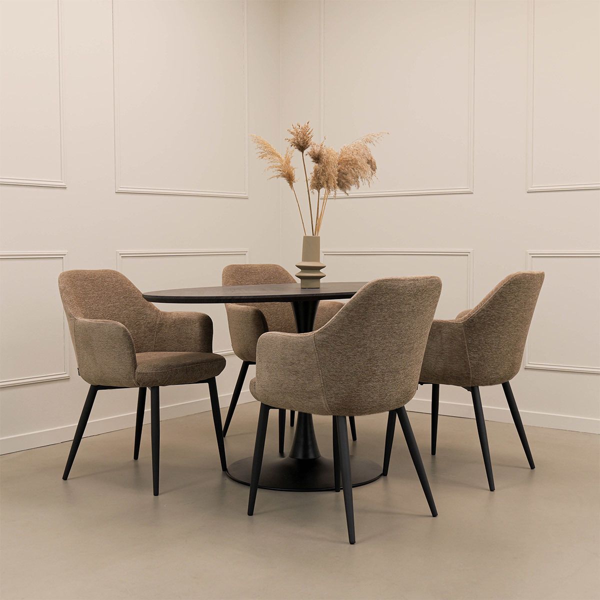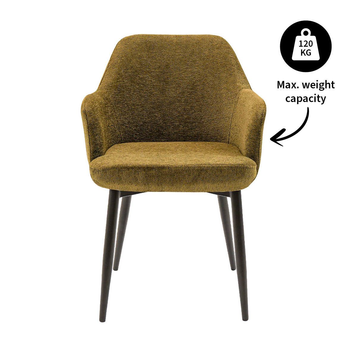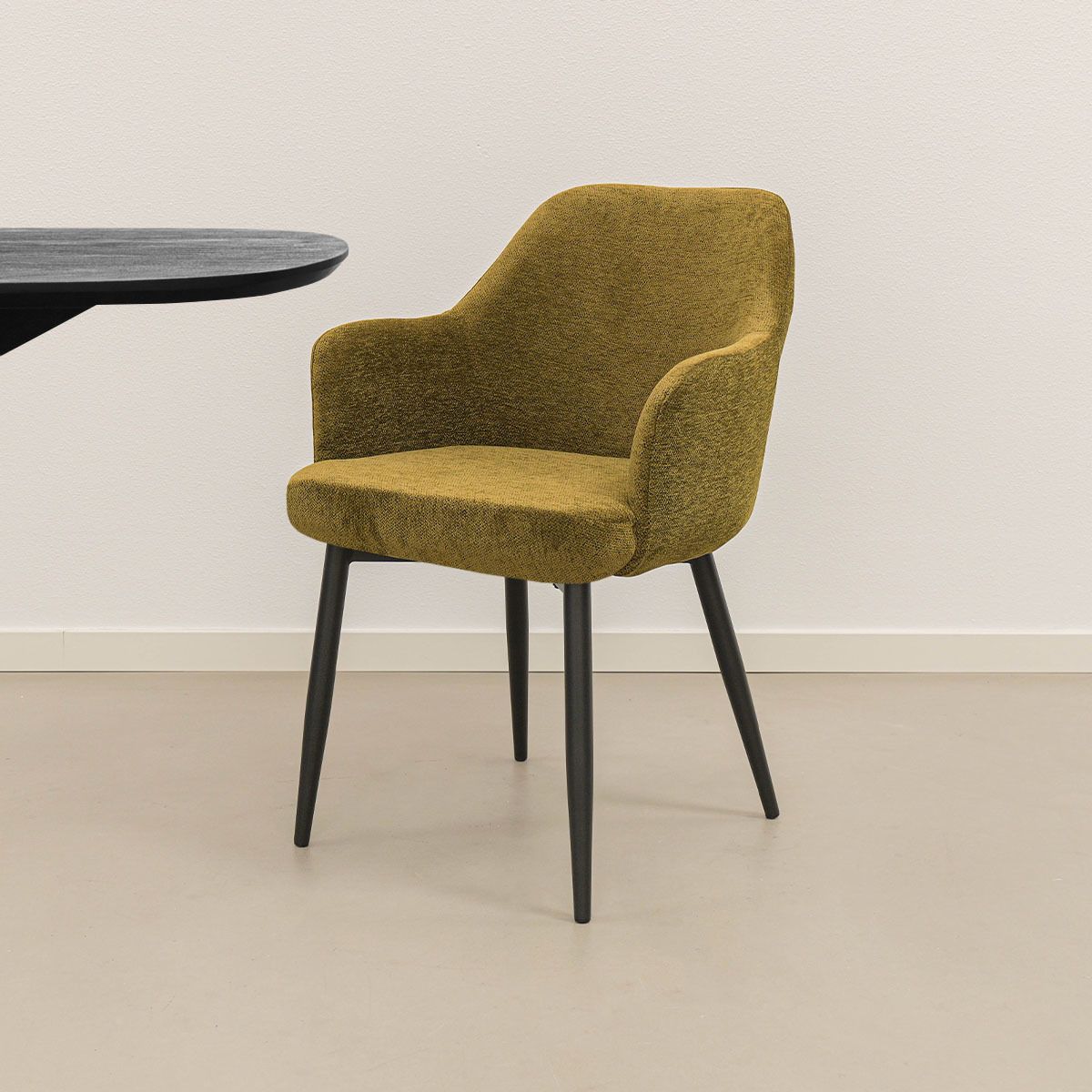 Le tissu à la texture douce est agréable au toucher et confère à JODI un aspect luxueux et accueillant. Grâce à son assise spacieuse et confortable et à ses accoudoirs finement sculptés, vous serez toujours détendu, même pendant les longs dîners. Le piètement métallique avec une finition noire mate offre un contraste saisissant et complète parfaitement le design épuré. JODI est disponible en plusieurs couleurs, ce qui lui permet de s'harmoniser facilement avec votre style d'intérieur.