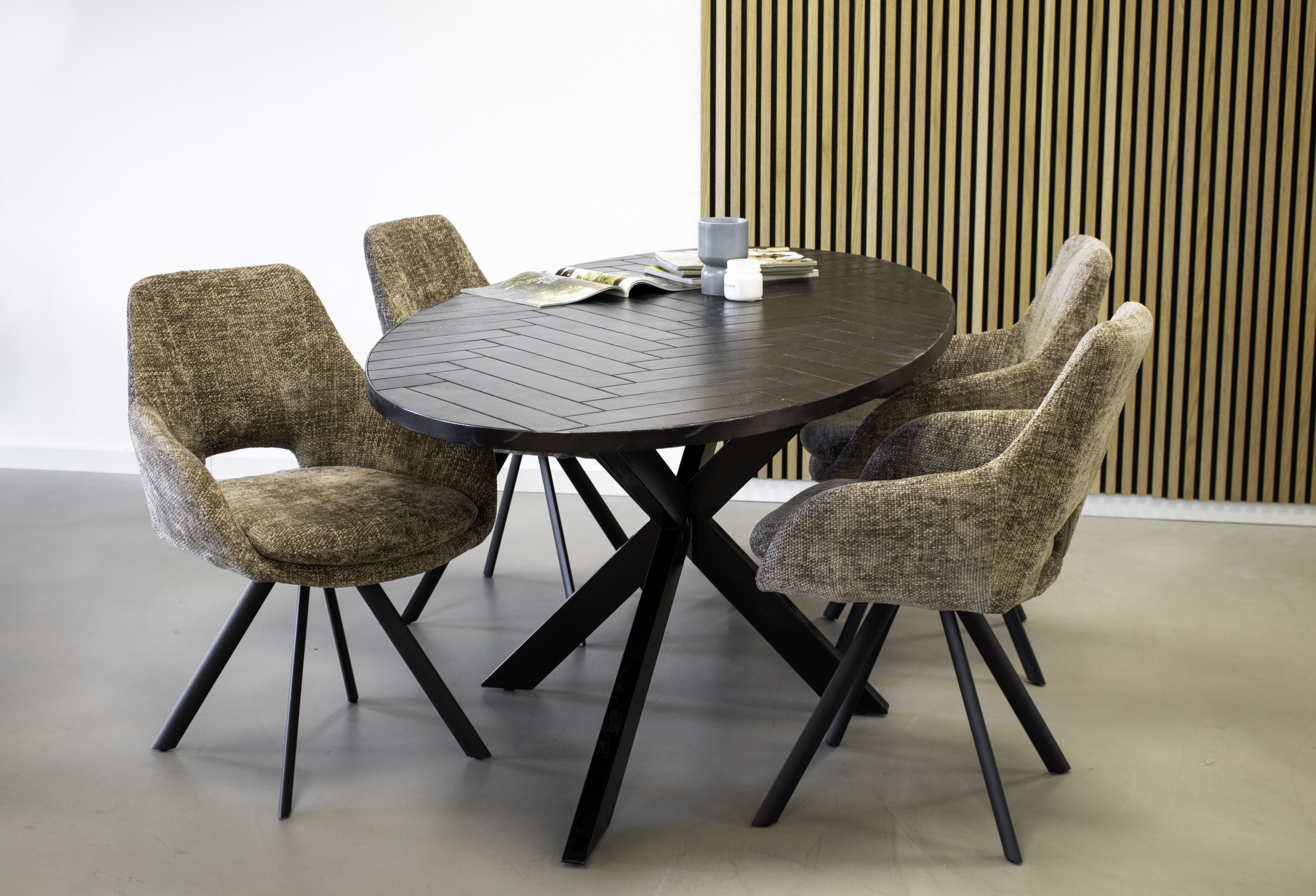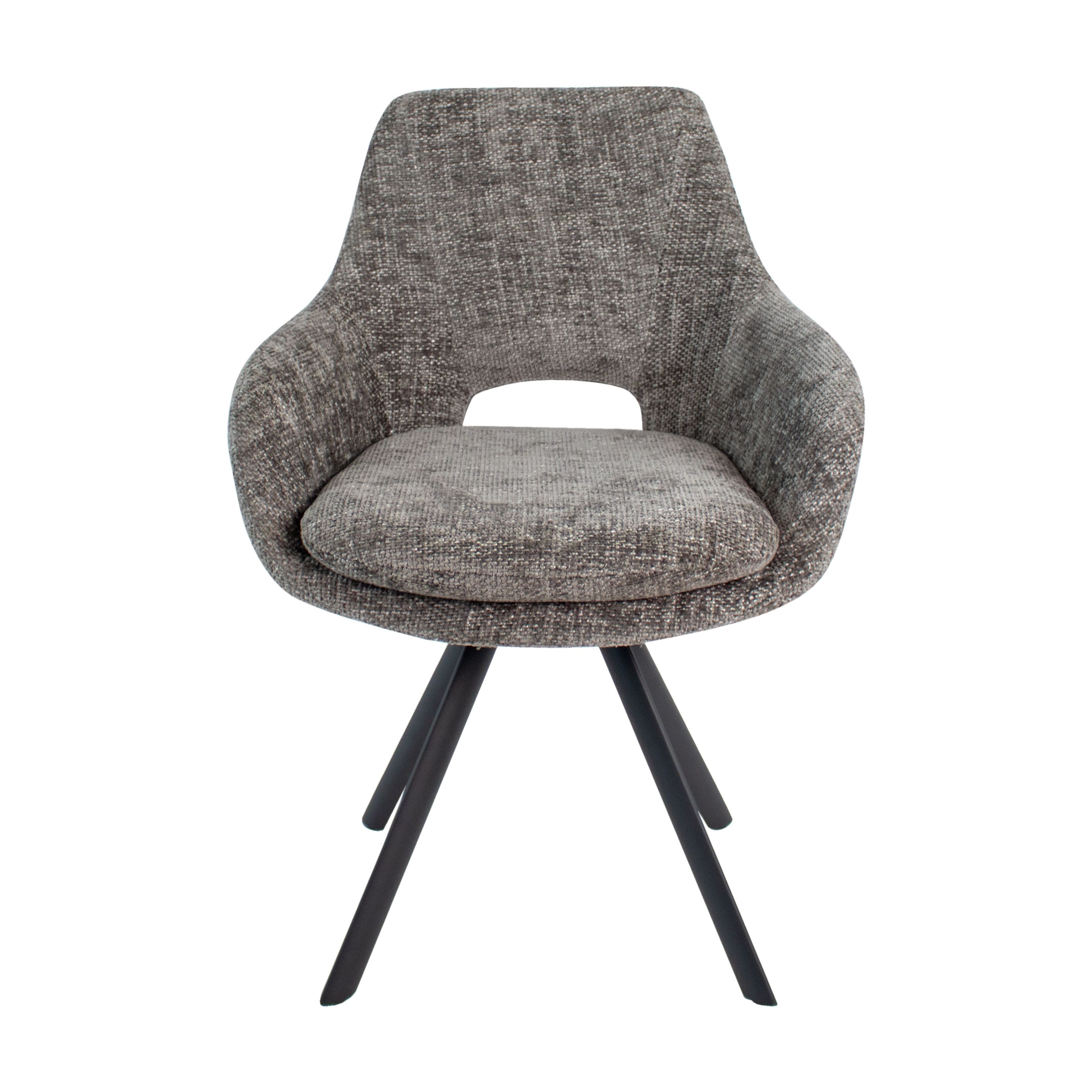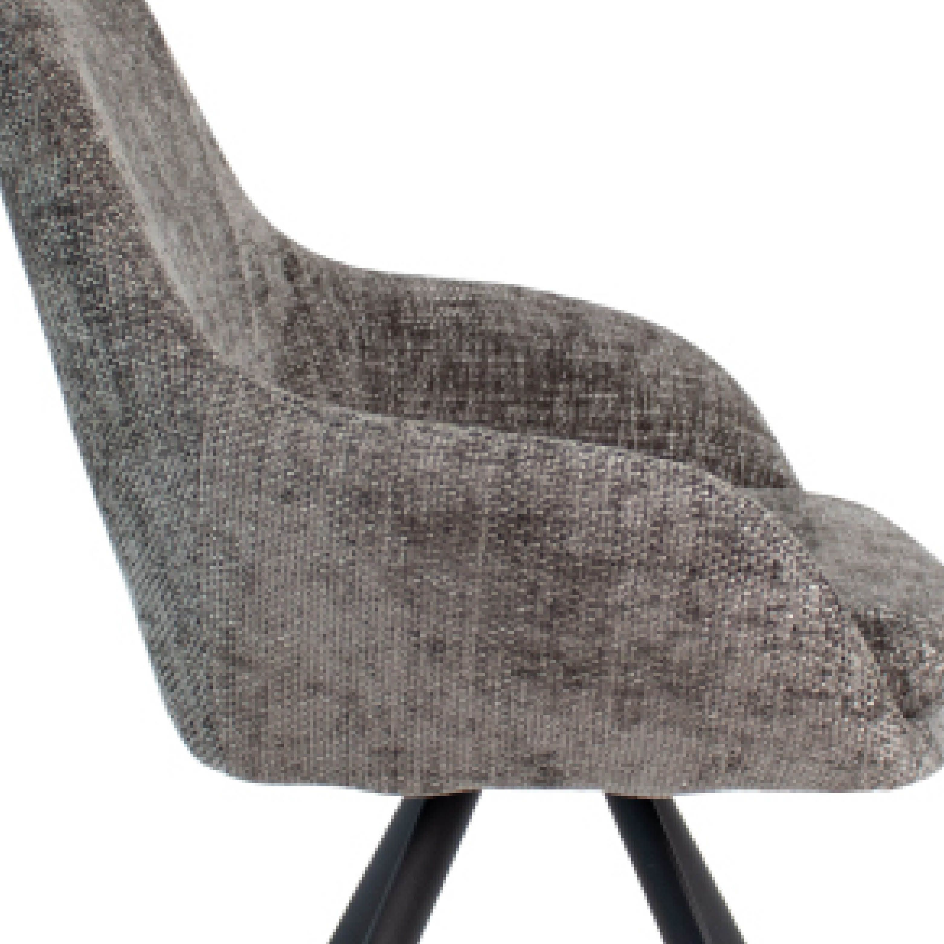 Rencontrez la chaise de salle à manger Jorn ! Avec son magnifique tissu Chenille, ses accoudoirs fins et son coussin d'assise moelleux, Jorn offre l'endroit parfait pour se détendre après une longue journée. Le piétement en métal noir lui confère un look contemporain, tandis que l'ouverture subtile dans le dossier ajoute une touche de caractère.