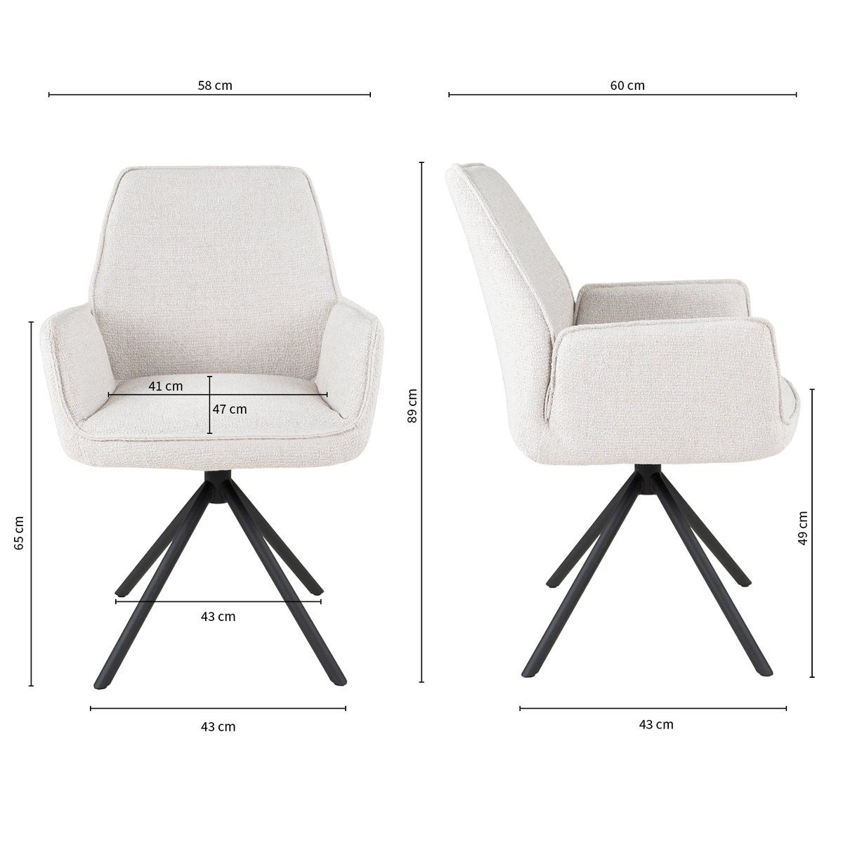 LOOK AT LEX! Cette chaise unique avec accoudoir doit son confort à son dossier bien ajusté et à son assise souple. Le rembourrage en texture coton combiné au cadre en acier noir confère à cette chaise un aspect luxueux. Avec la chaise de salle à manger Lex, vous apprécierez encore plus vos repas entre amis ou en famille. Parfait pour les longs dîners ! Disponible en plusieurs couleurs, mélangez-les pour obtenir le meilleur résultat possible ! Totalement Kick, non ? Notre Lex n'est pas rotatif.