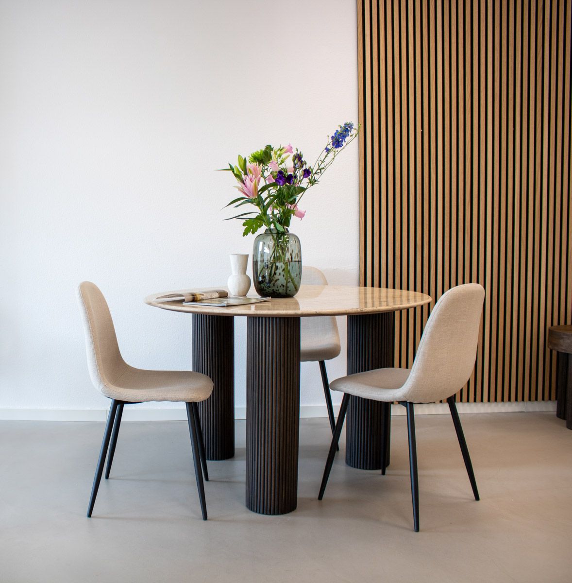 MEET NOOR ! La chaise à manger NOOR est une chaise confortable tapissée d'un tissu à la texture fraîche. La base est faite de métal et finie en noir. La chaise de salle à manger NOOR s'adapte à tous les intérieurs et est disponible en plusieurs couleurs tendance. Mélangez et associez pour obtenir le meilleur résultat de Kick !