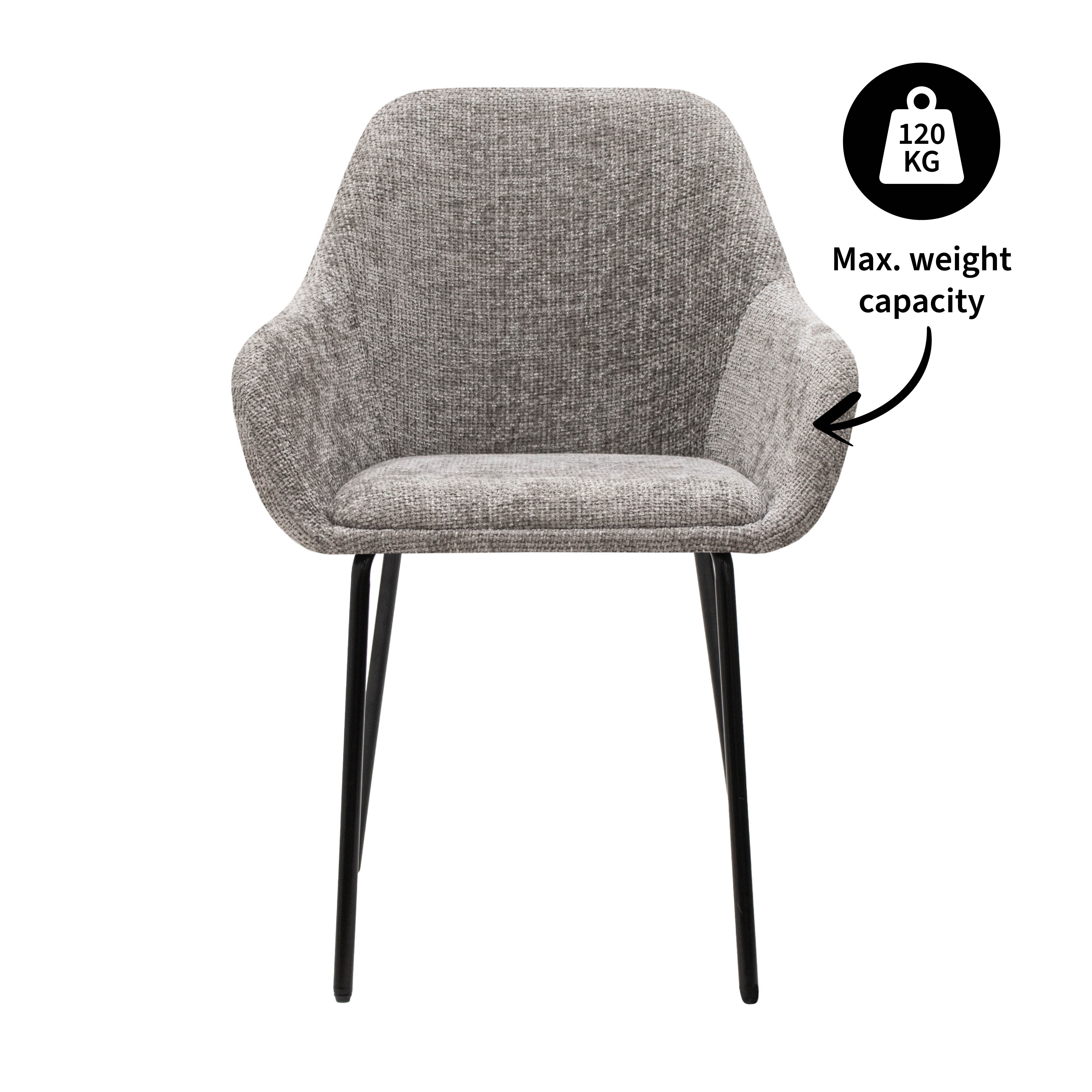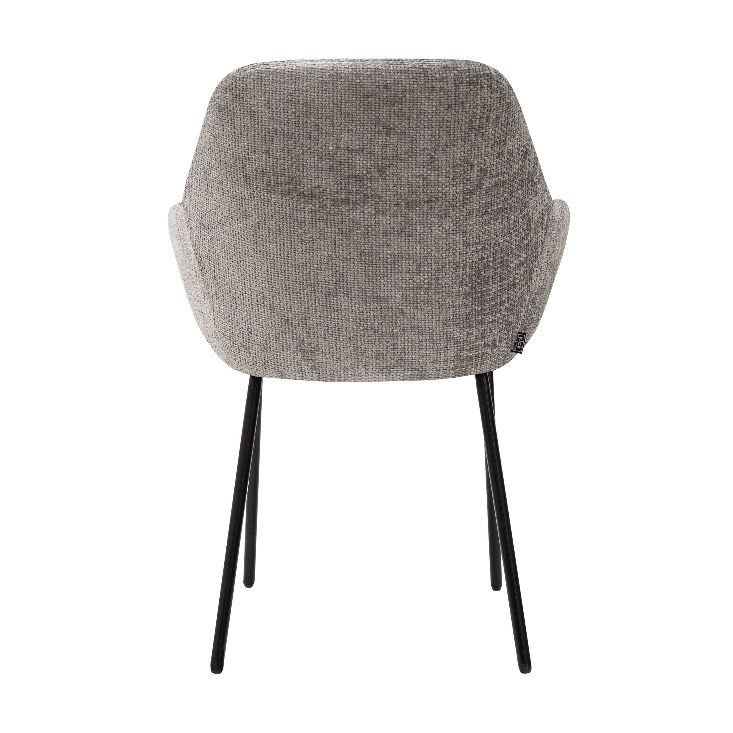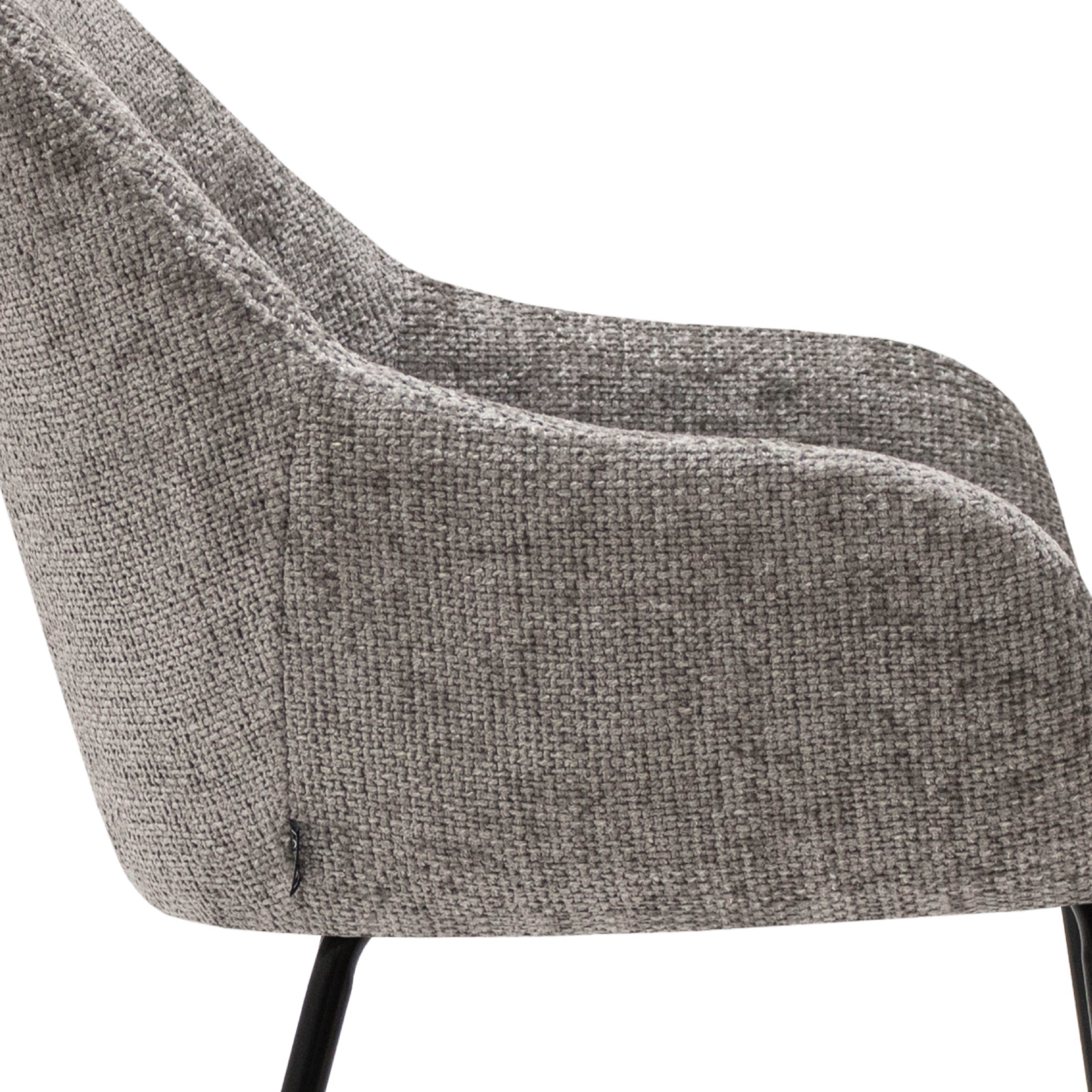 Revêtue d'un tissu chenille, la chaise offre une sensation de chaleur. L'assise est confortable et les accoudoirs sont bien positionnés, ce qui maximise l'expérience d'assise. La structure en métal noir industriel confère non seulement un aspect moderne et spacieux à la chaise, mais lui permet également de se tenir fermement au sol.