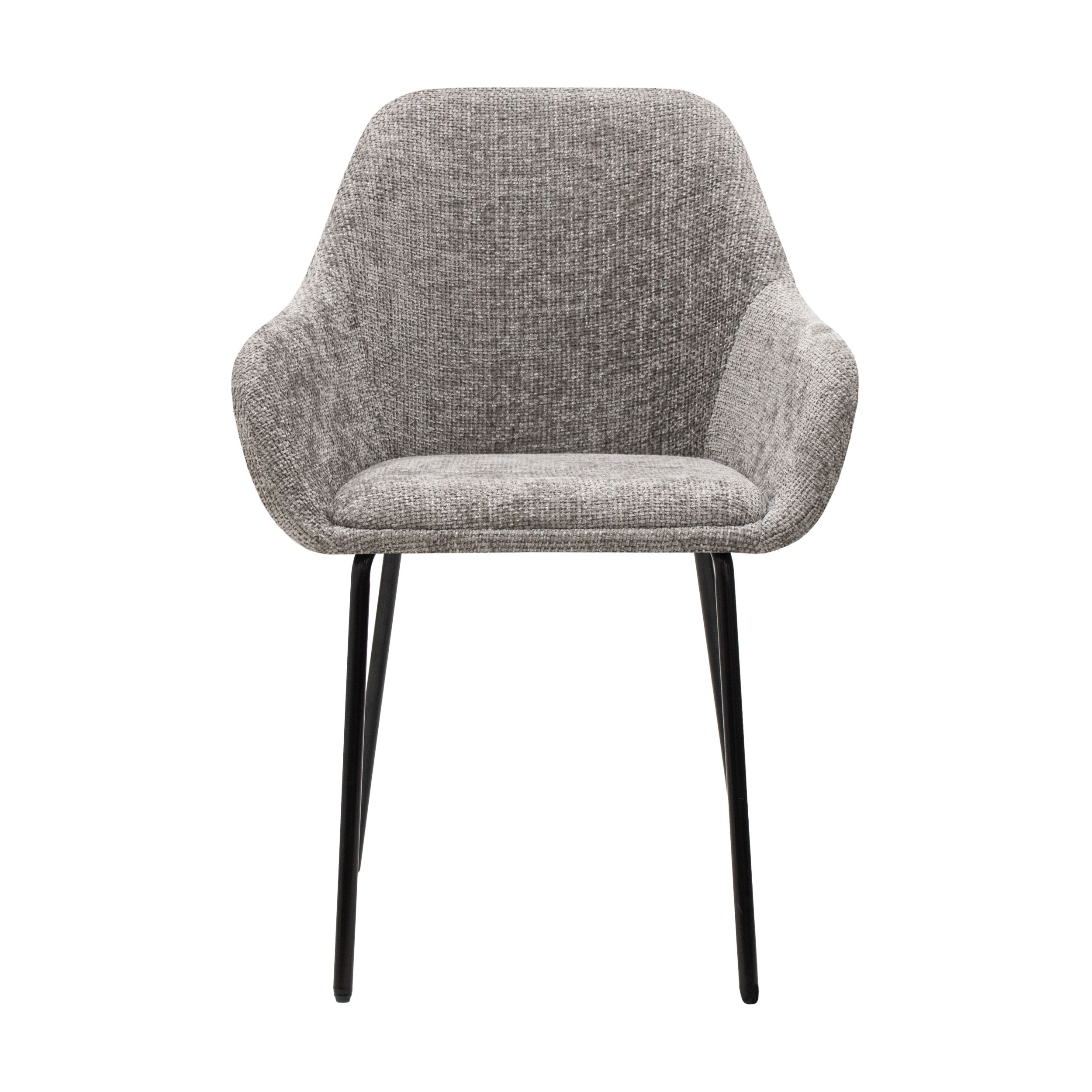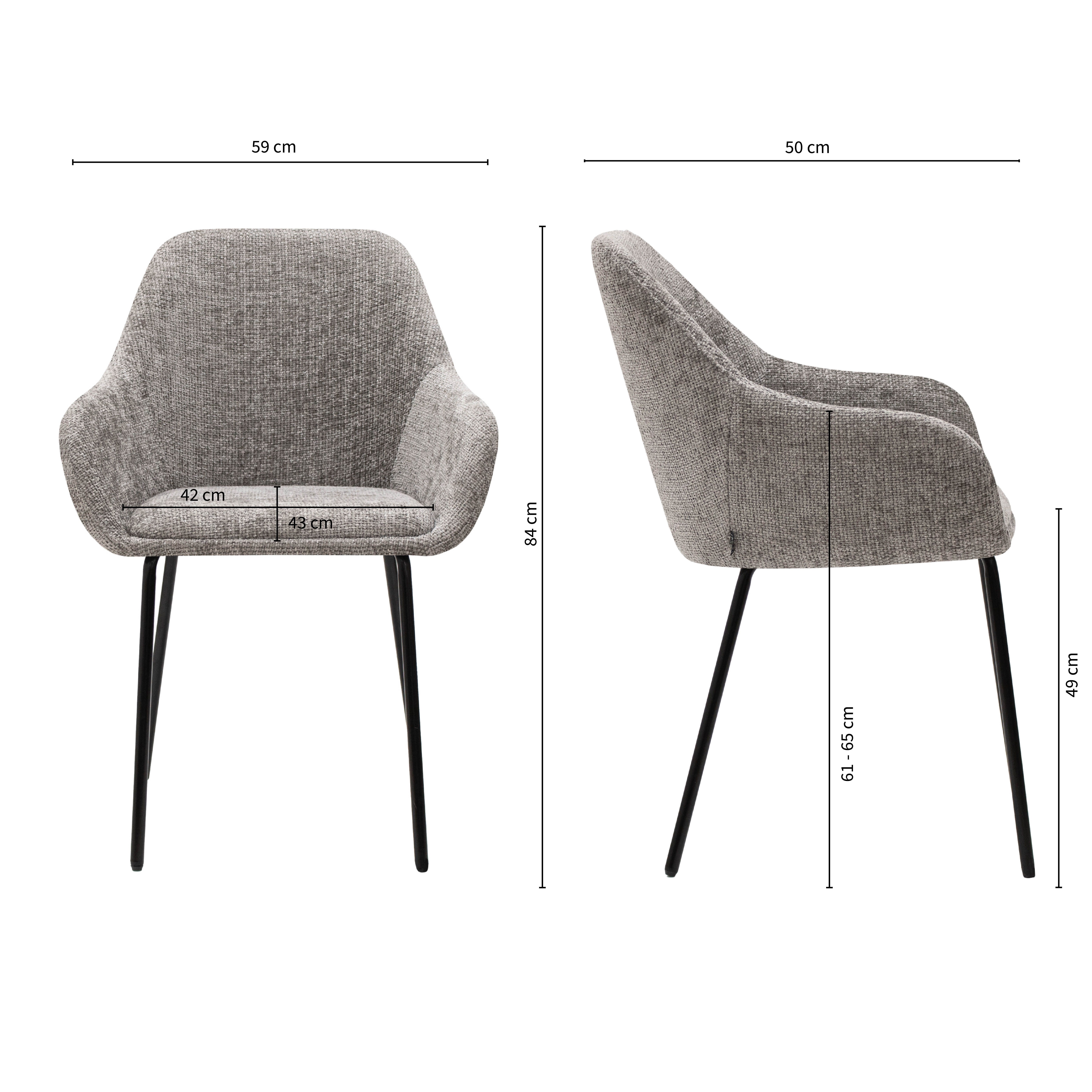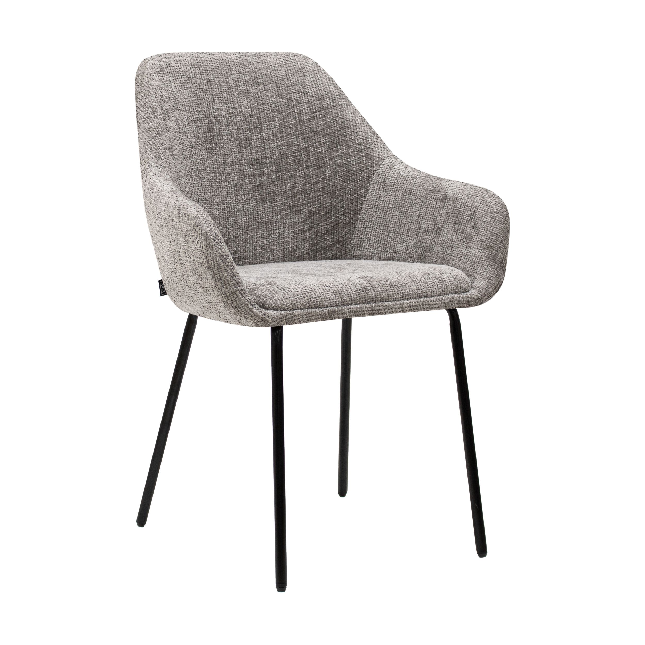 Revêtue d'un tissu chenille, la chaise offre une sensation de chaleur. L'assise est confortable et les accoudoirs sont bien positionnés, ce qui maximise l'expérience d'assise. La structure en métal noir industriel confère non seulement un aspect moderne et spacieux à la chaise, mais lui permet également de se tenir fermement au sol.