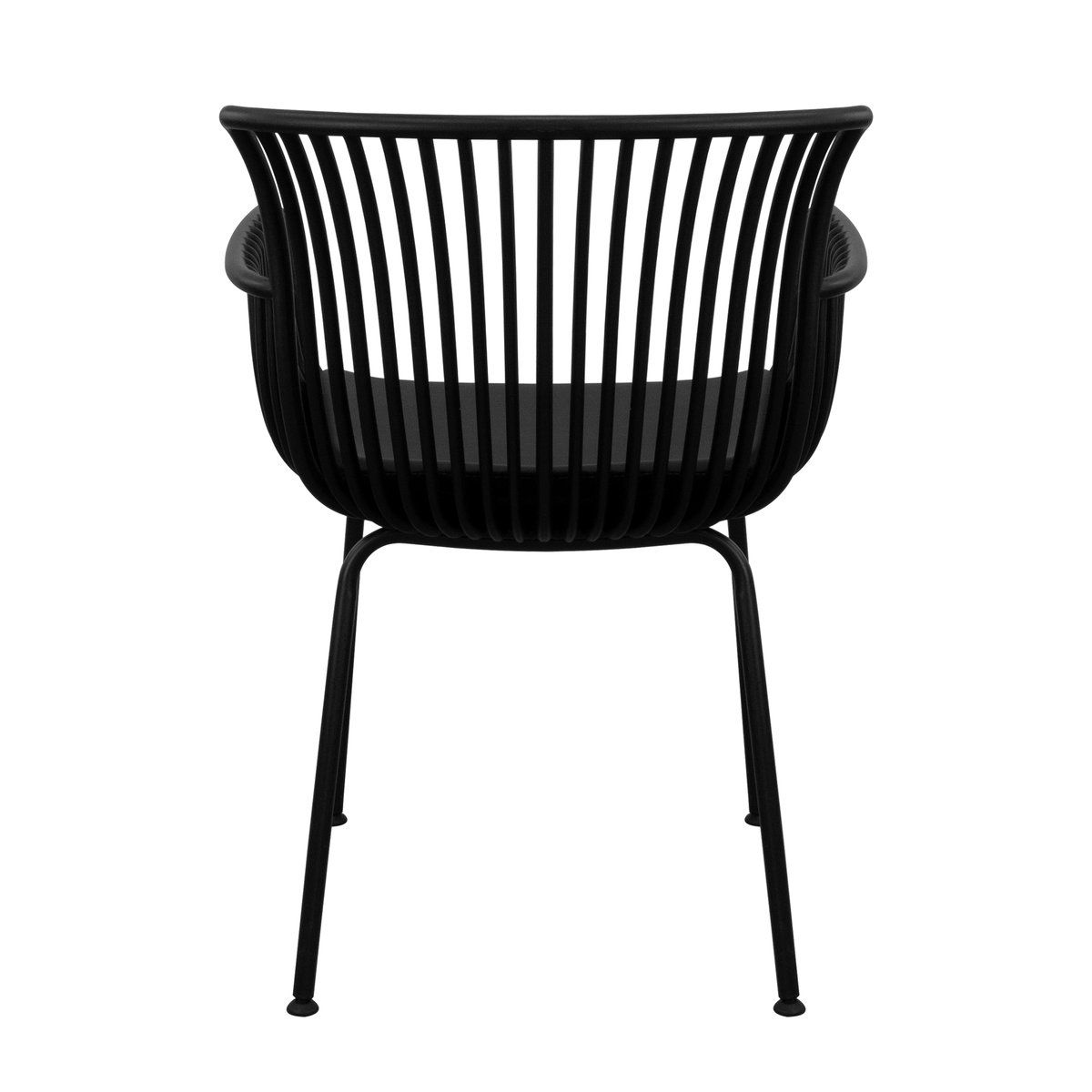 L'assise en forme de coque en plastique robuste confère à OTIS un look moderne, tandis que le piètement métallique avec revêtement protecteur assure stabilité et résistance aux intempéries. Un détail élégant à la fois pratique et durable.