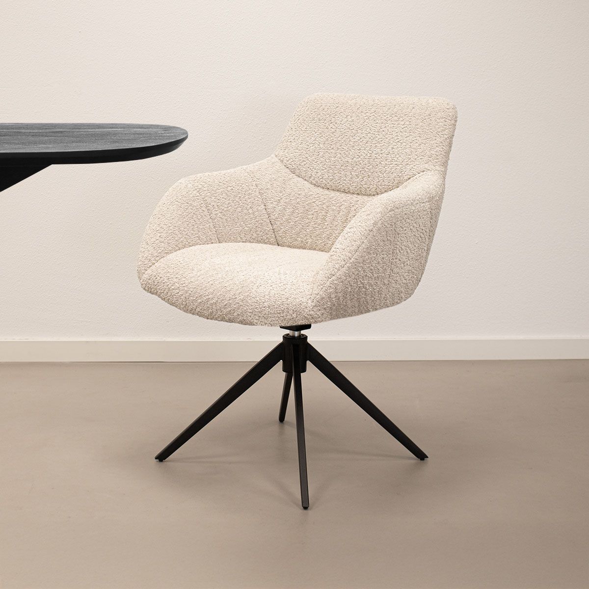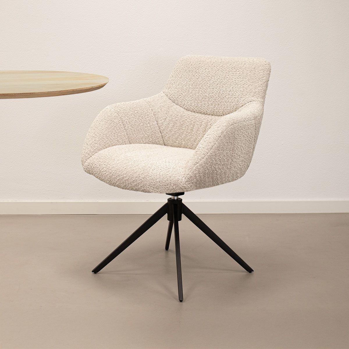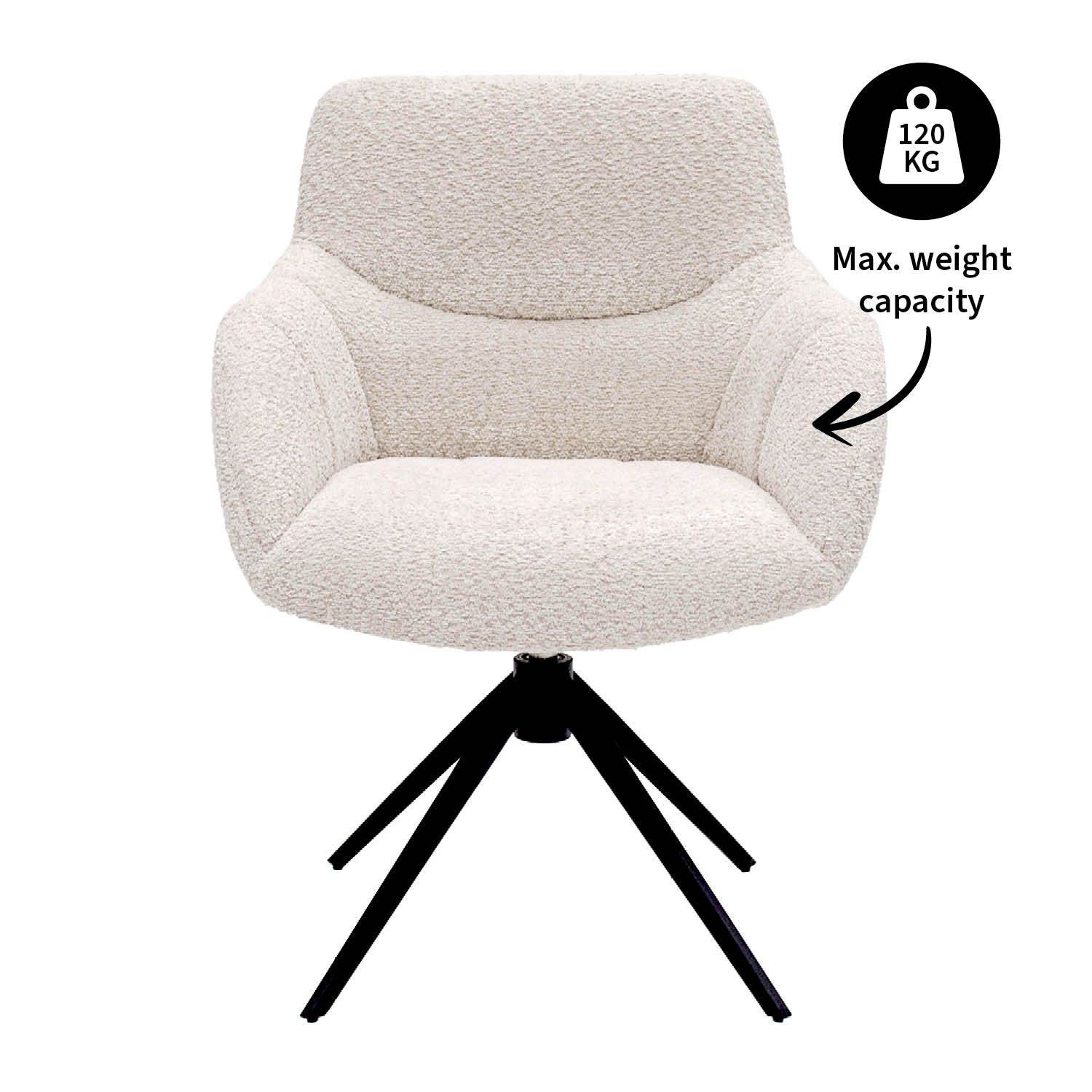 Découvrez la chaise pivotante KICK Fer, un véritable atout déco pour tout coin repas ! Fer allie allure luxueuse et grand confort d’assise, idéale pour ceux qui aiment un intérieur moderne avec une touche ludique. Grâce au motif de surpiqûres élégant sur l’assise et le dossier, Fer affiche un look unique et raffiné. Le tissu bouclé doux apporte non seulement une touche chic, mais garantit également un confort de haute qualité.