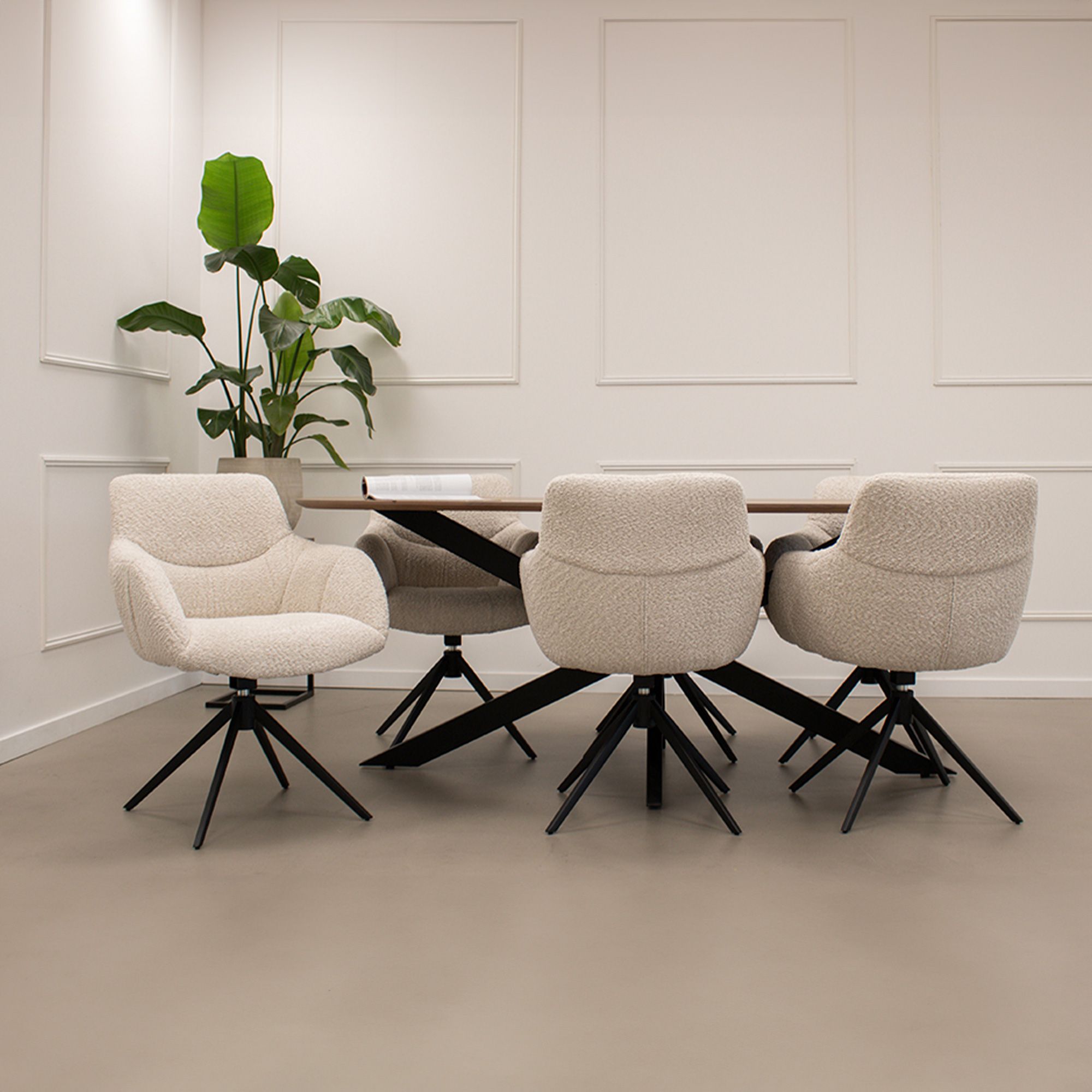 La base pivotante pratique à 360 degrés rend Fer non seulement belle mais aussi fonctionnelle. Et encore mieux : le piètement revient automatiquement à sa position d’origine, parfait pour une allure soignée autour de la table. Que vous souhaitiez profiter d’un long dîner ou d’un moment convivial entre amis, avec Fer vous êtes toujours bien installé.