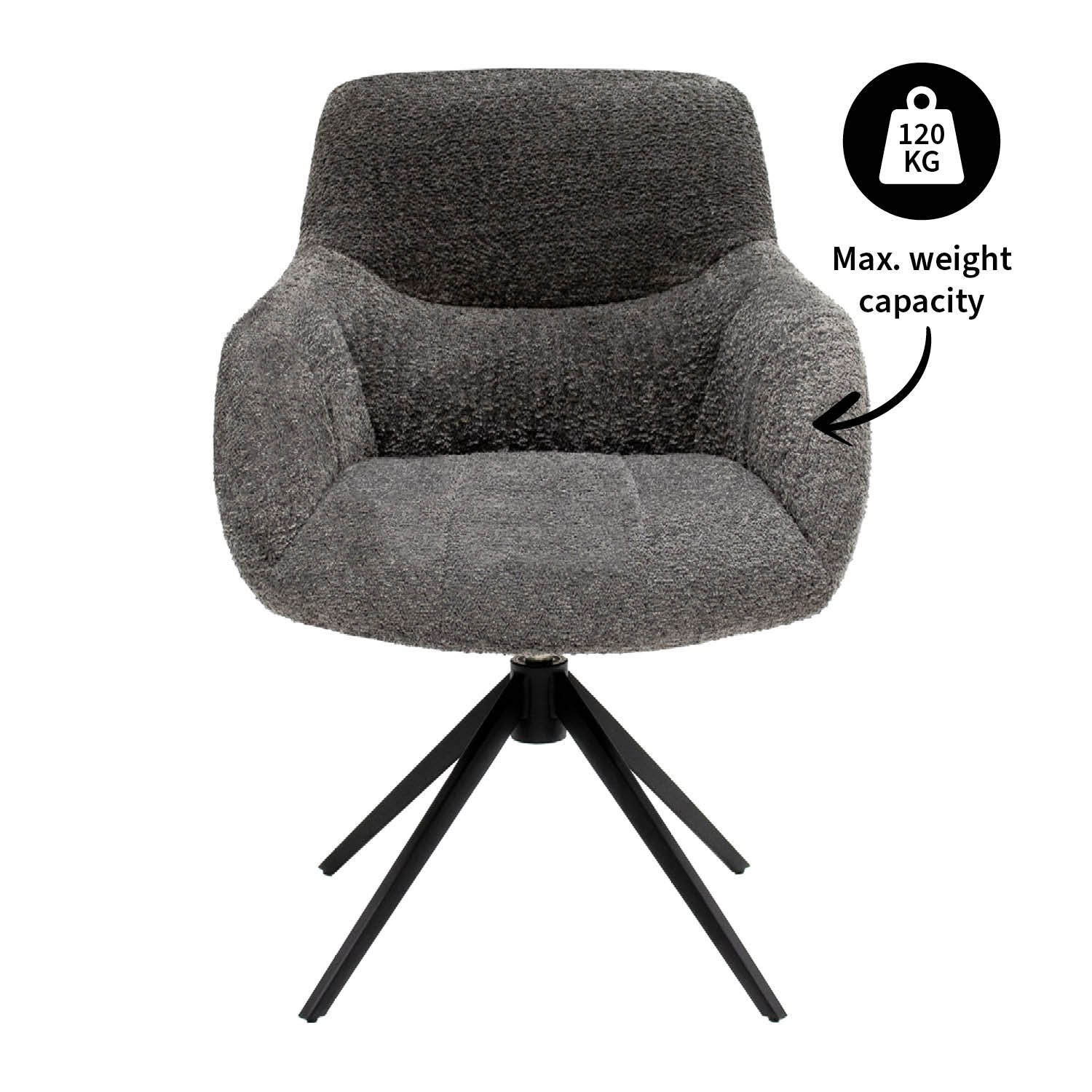 Découvrez la chaise pivotante KICK Fer, un véritable atout déco pour tout coin repas ! Fer allie allure luxueuse et grand confort d’assise, idéale pour ceux qui aiment un intérieur moderne avec une touche ludique. Grâce au motif de surpiqûres élégant sur l’assise et le dossier, Fer affiche un look unique et raffiné. Le tissu bouclé doux apporte non seulement une touche chic, mais garantit également un confort de haute qualité.
