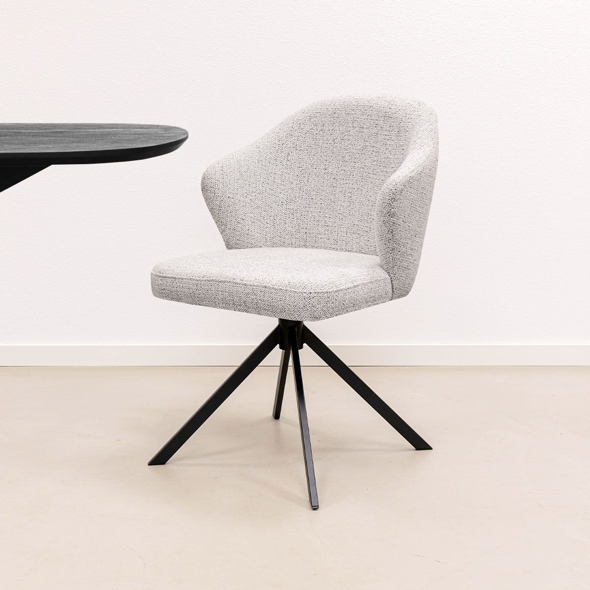 Outre son design particulier, LIZ est également très confortable. La coque est légèrement incurvée et recouverte d'un tissu texturé mélangé qui dégage à la fois luxe et chaleur. Grâce à son piètement pivotant à 360 degrés, vous pouvez vous déplacer facilement sans avoir à vous lever. Et cerise sur le gâteau : LIZ est disponible en plusieurs couleurs élégantes, vous trouverez donc toujours une variante qui s'intègre parfaitement à votre intérieur.