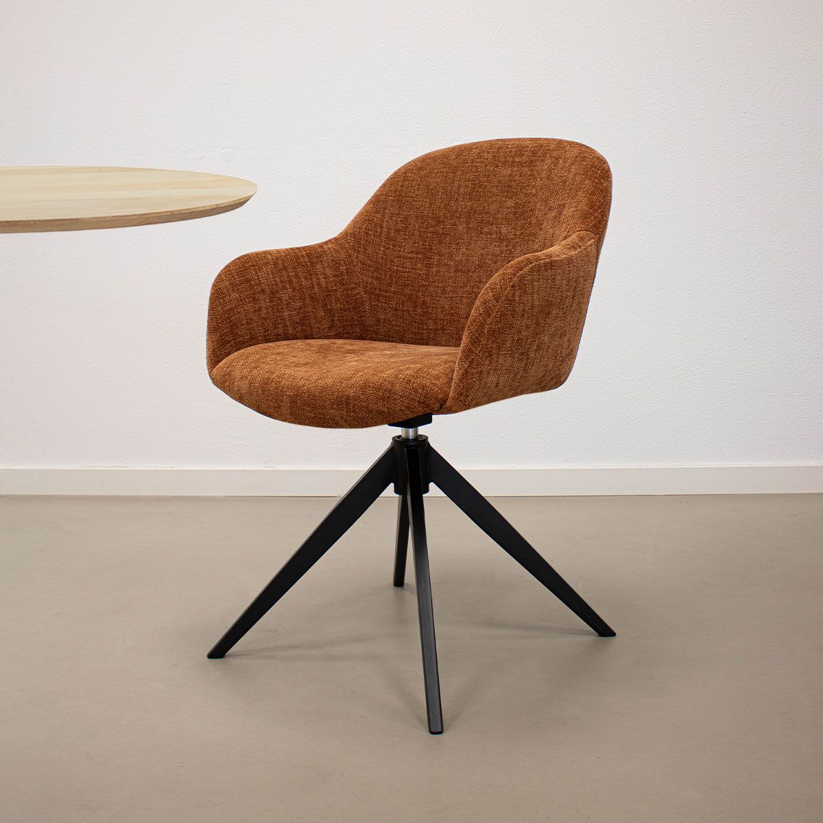 Avec son aspect chaleureux, son tissu doux et texturé et son look moderne, MATT attire tous les regards, que ce soit à la table ou ailleurs. Ses formes arrondies et son assise confortable garantissent un confort d'assise optimal, que vous soyez en train de manger, de travailler ou de vous détendre.