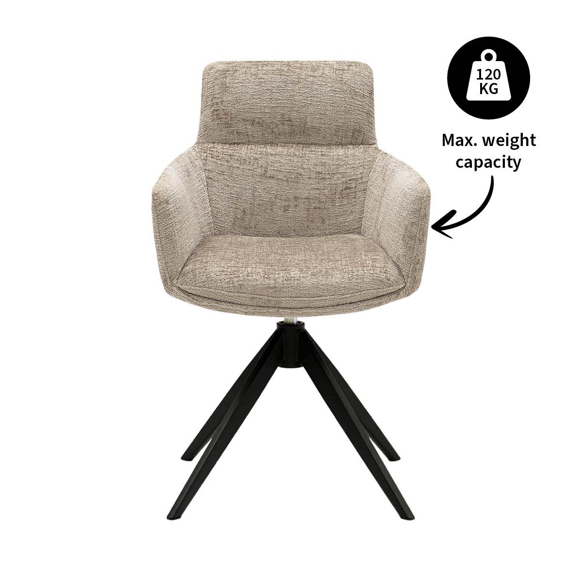 Avec son tissu texturé doux et finement tissé et son assise confortable, NIEK est le mélange parfait du luxe et de la commodité. Ses formes arrondies, ses accoudoirs et son riche rembourrage vous permettent de rester assis pendant des heures, ce qui est idéal pour les longs dîners ou les soirées arrosées.