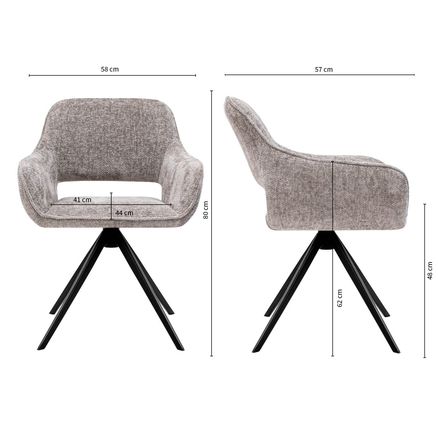 Dimensions de la chaise pivotante NORI :