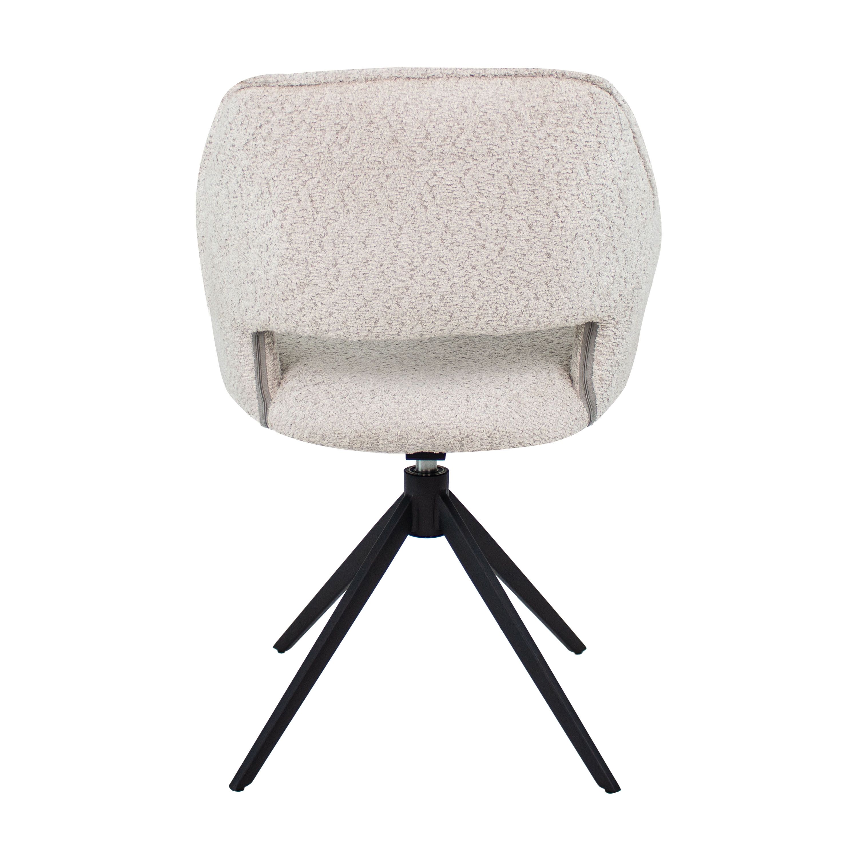 MEET OWEN! Le fauteuil pivotant Owen est revêtu d'un beau tissu bouclé doux, doté d'un accoudoir fin et d'une ouverture dans le dossier. Sa base en métal et son châssis pivotant à 360 degrés, qui revient automatiquement dans sa position initiale, allient style et facilité d'utilisation. Owen est disponible en différentes couleurs!