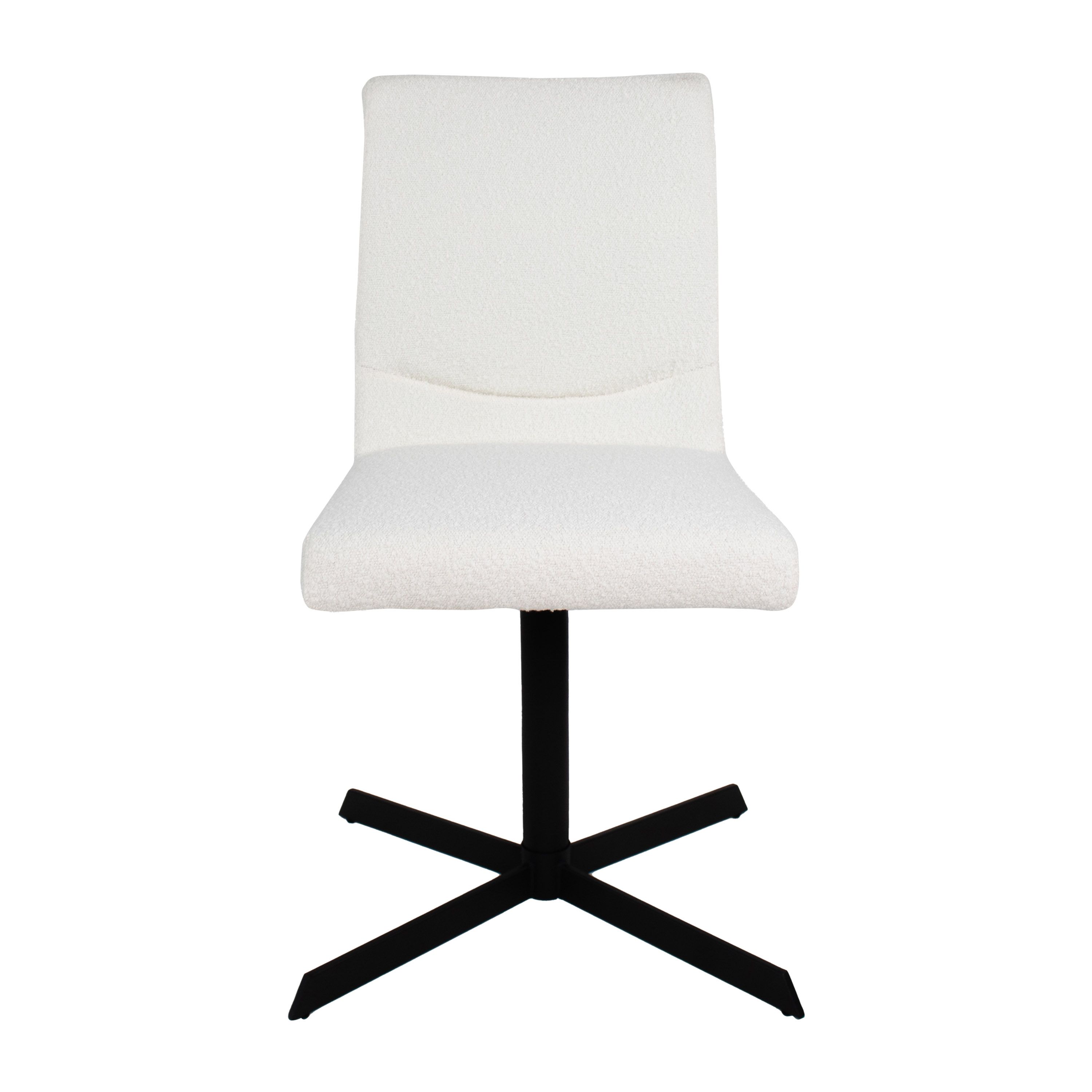 Sam est revêtu d'un tissu texturé mélangé et disponible en plusieurs coloris. La structure métallique de la chaise est une prouesse de design moderne et de fonctionnalité. La structure est dotée d'un mécanisme de pivotement à 360 degrés, ce qui vous permet de vous déplacer en douceur et de rejoindre facilement la table à manger ou d'avoir une conversation sans déplacer la chaise.