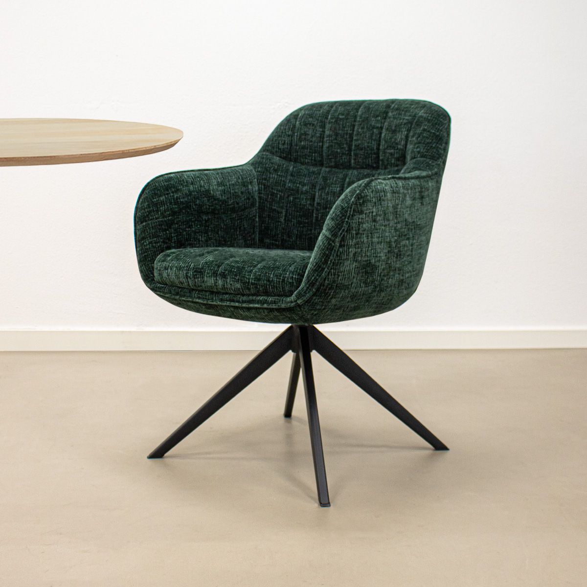STAN est revêtu d'un luxueux tissu de velours inspiré par les imprimés de la faune et de la flore, avec une touche de chic. L'assise moelleuse avec accoudoirs offre un confort ultime et repose sur une base robuste pivotant à 360 degrés. Que vous soyez en train de manger, de travailler ou de vous détendre, STAN tourne littéralement dans toutes les directions. Choisissez parmi quatre couleurs élégantes et mélangez et assortissez votre ensemble parfait.