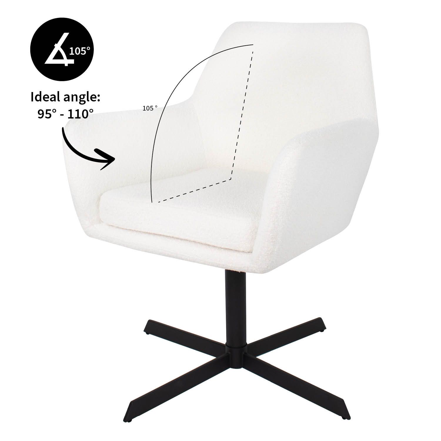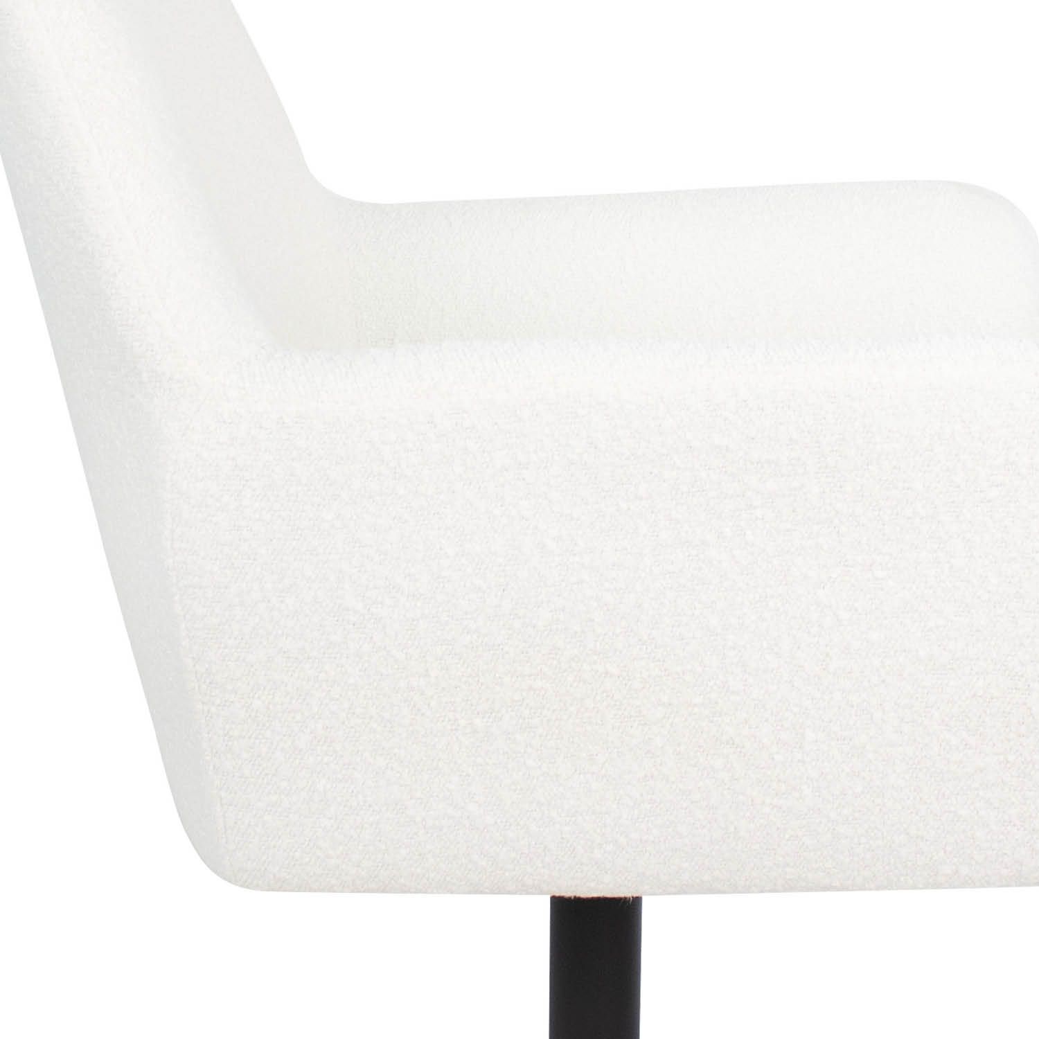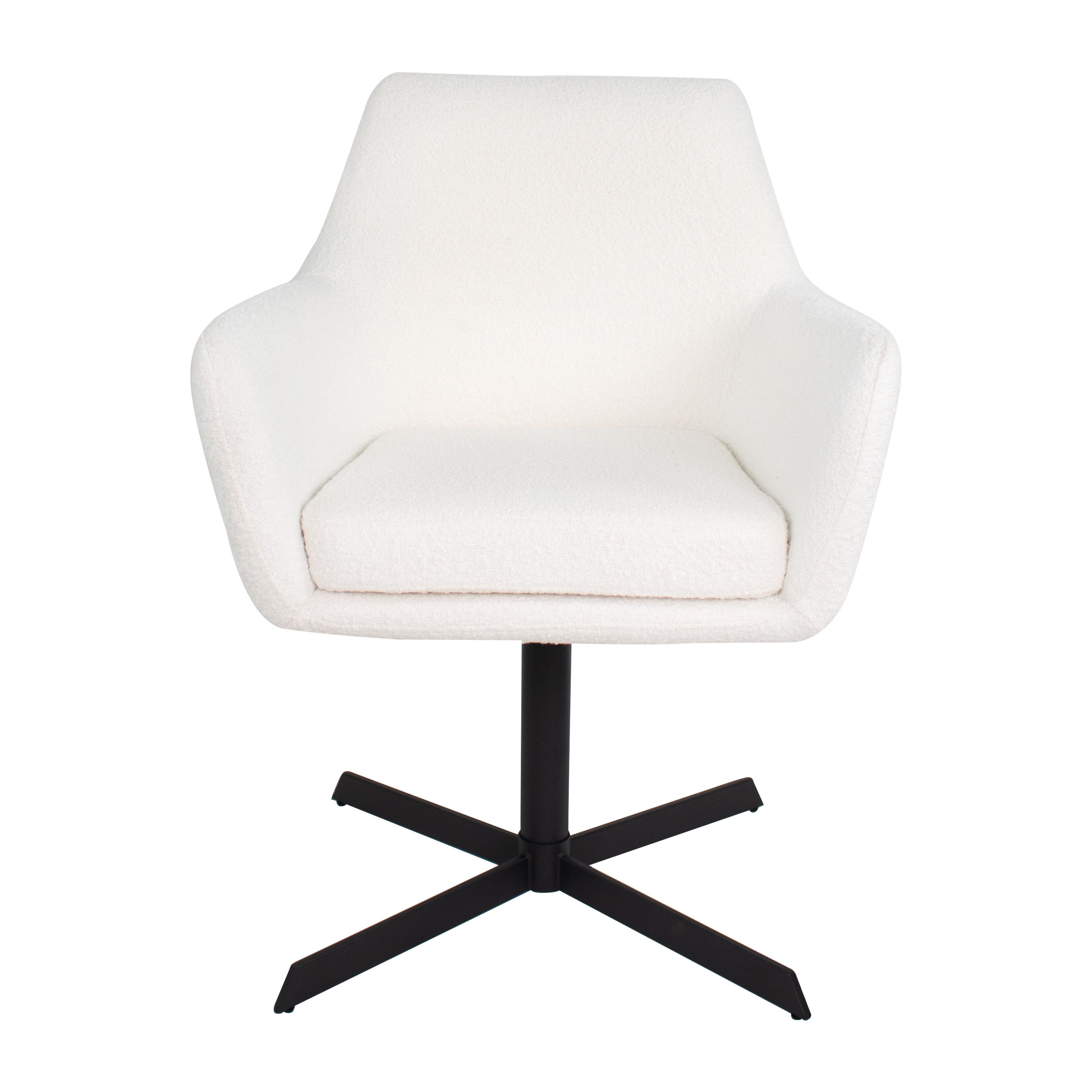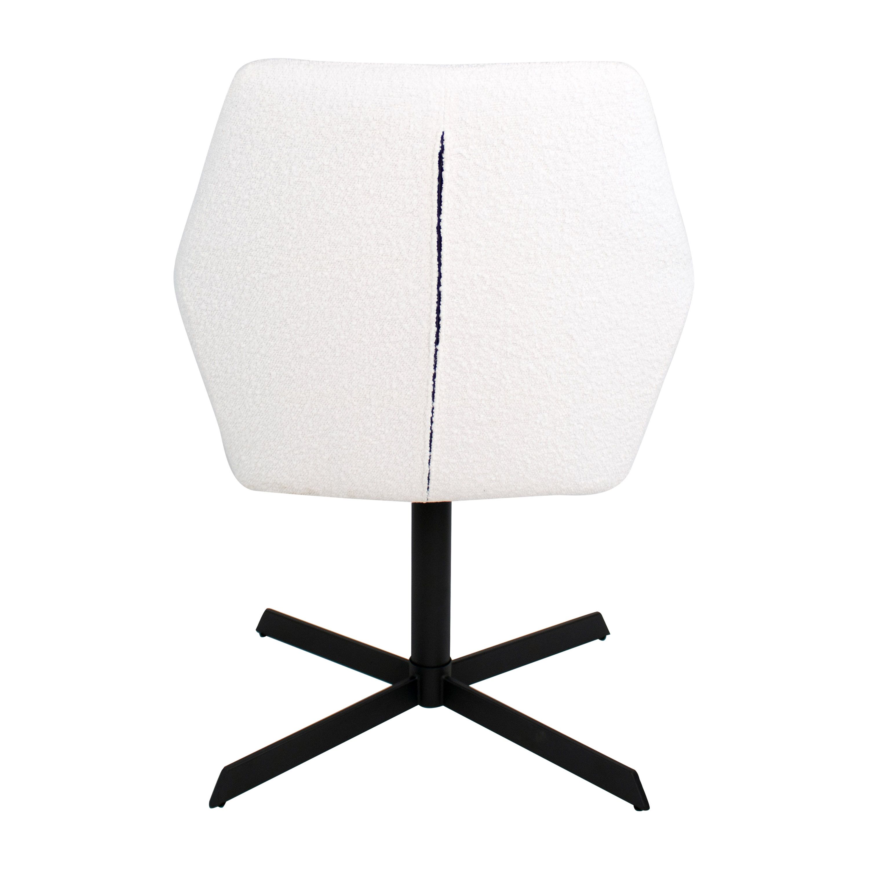 Viktor est enveloppé d'un tissu bouclé doux. Le fauteuil est doté d'accoudoirs bien positionnés qui maximisent le confort d'assise. La structure métallique de la chaise est une prouesse de design moderne et de fonctionnalité. Il est doté d'un mécanisme de pivotement à 360 degrés qui vous permet de vous déplacer en douceur et de rejoindre facilement la table à manger ou d'avoir une conversation sans déplacer la chaise.