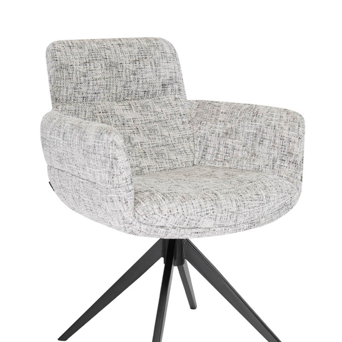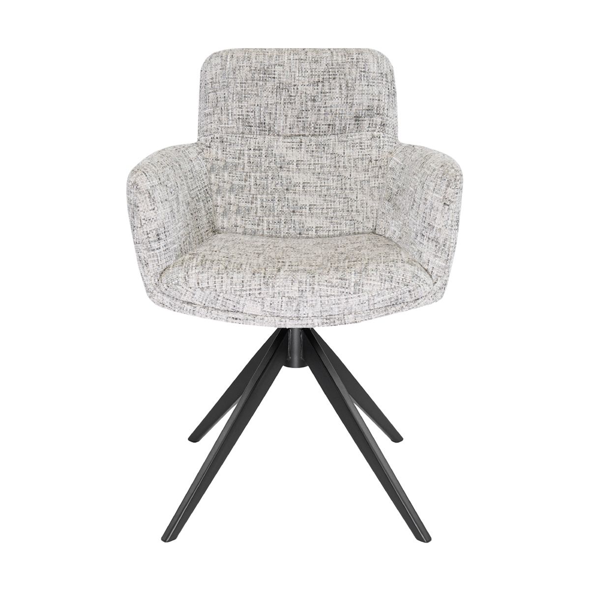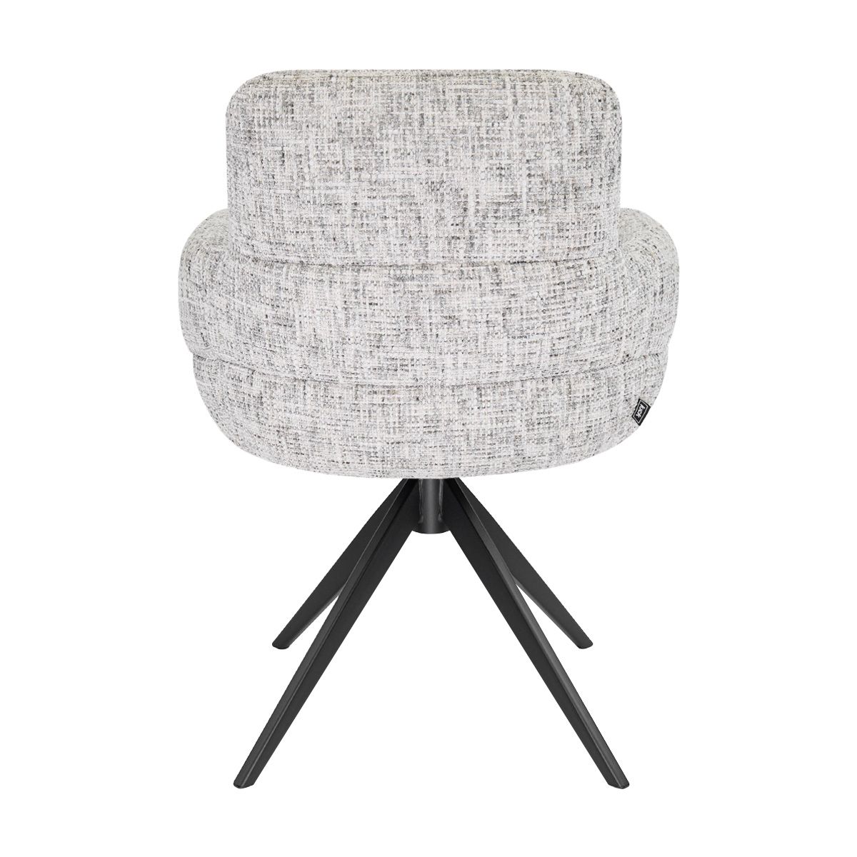 Grâce à son rembourrage généreux, son dossier confortable et ses accoudoirs offrant un bon soutien, vous êtes toujours bien assis, que vous passiez de longues heures à table ou que vous travailliez à domicile. Le piètement pivotant à 360 degrés avec fonction de retour automatique offre un confort supplémentaire, tandis que le piètement en métal noir constitue une base moderne et luxueuse.