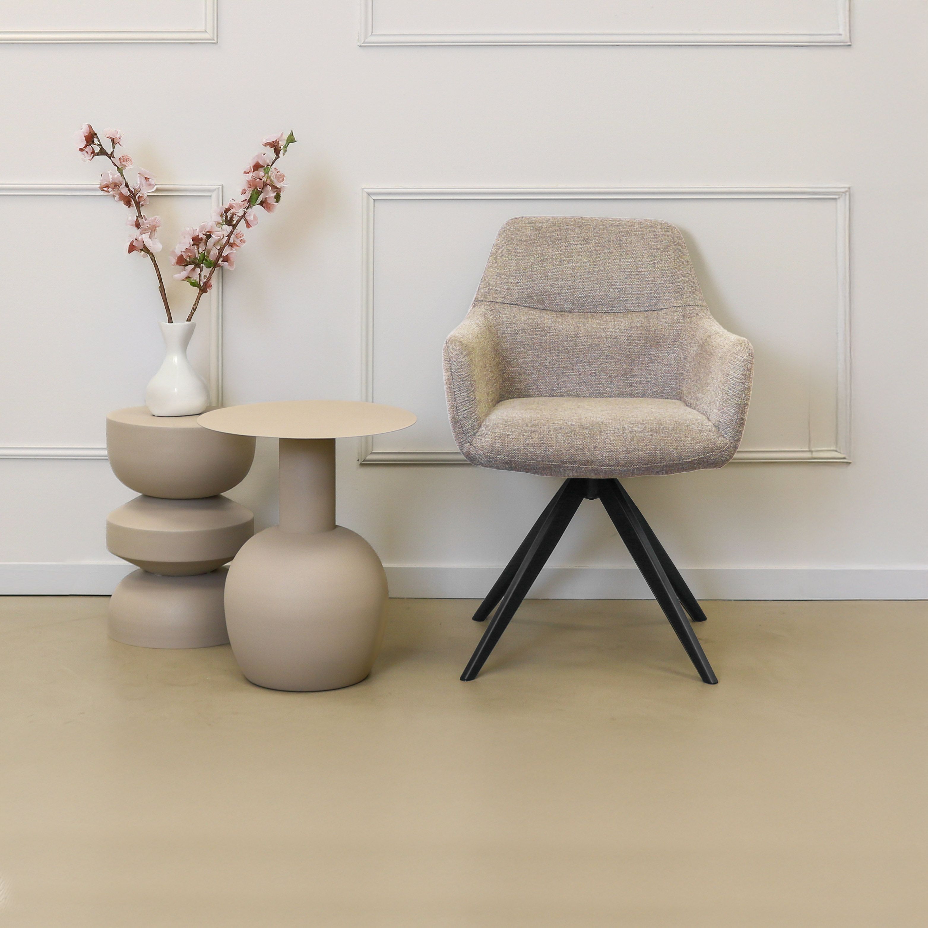TOM est la chaise pivotante idéale pour tous ceux qui accordent de l'importance au confort et au style. Avec son piètement pivotant à 360 degrés, cette chaise de salle à manger pivotante offre un confort d'utilisation ultime : glissez-vous facilement à table et levez-vous sans avoir à déplacer votre chaise. Grâce à son assise et à ses accoudoirs confortables, vous profiterez sans effort de longs dîners, d'apéritifs conviviaux ou d'une journée de travail productive.
