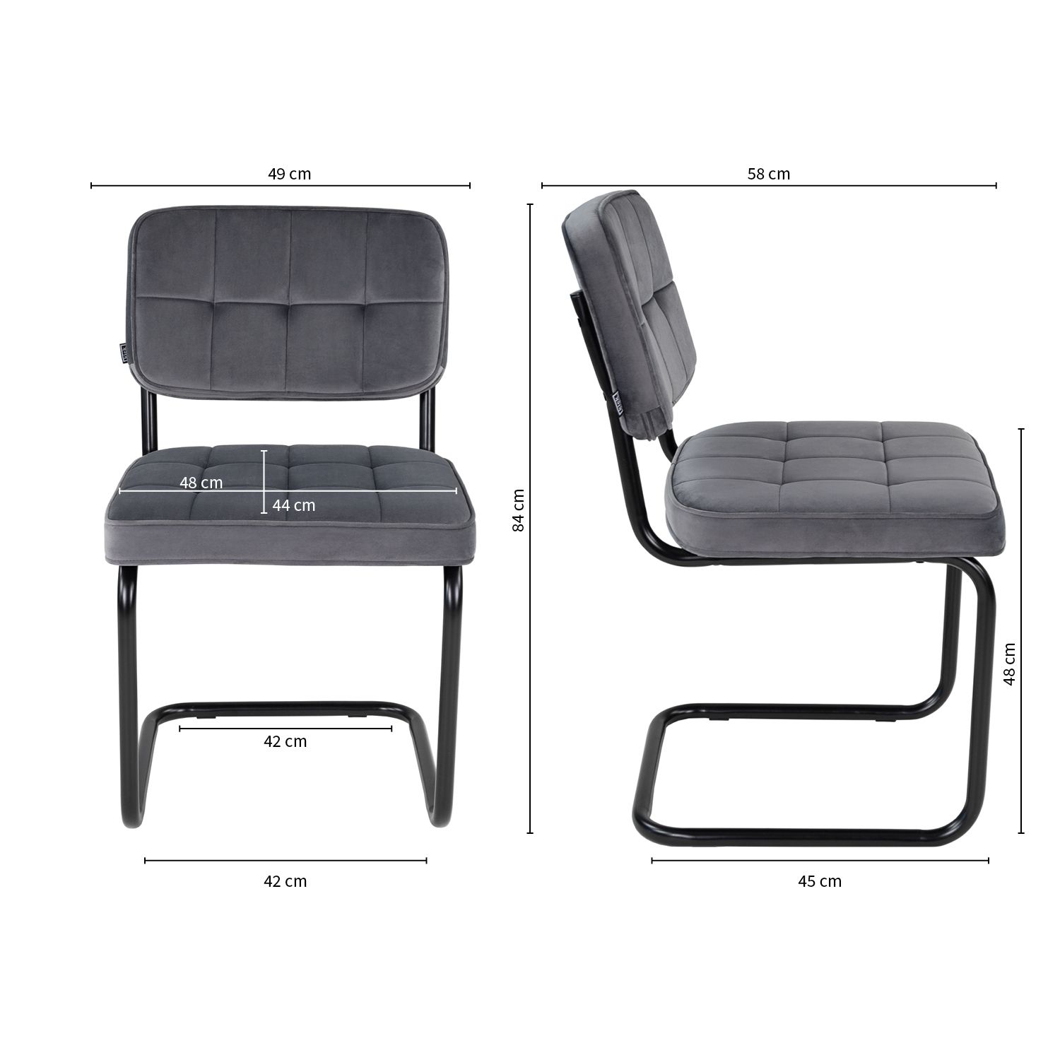 - Piètement traîneau en métal noir robuste pour un confort d'assise supplémentaire