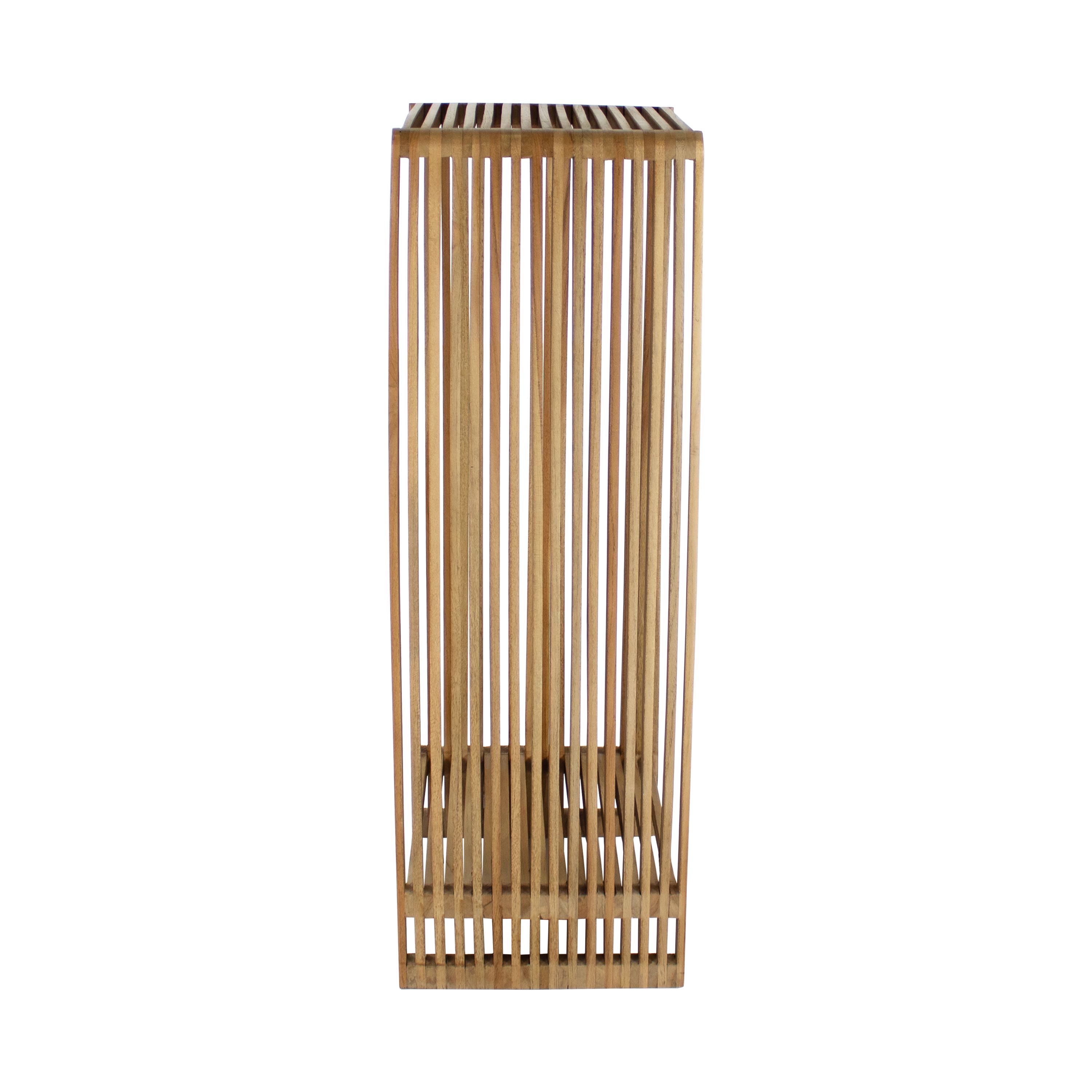 REGARDEZ MICK ! Cette table d'appoint est cool, originale et atmosphérique. Le design épuré des lattes fait de MICK un véritable accroche-regard. MICK a un look naturel et scandinave et est fabriqué en teck dans une couleur brun doré. Il peut être utilisé comme table d'appoint mais aussi comme table de chevet ! En bref, MICK est un atout pour votre intérieur. Disponible en deux tailles différentes.
