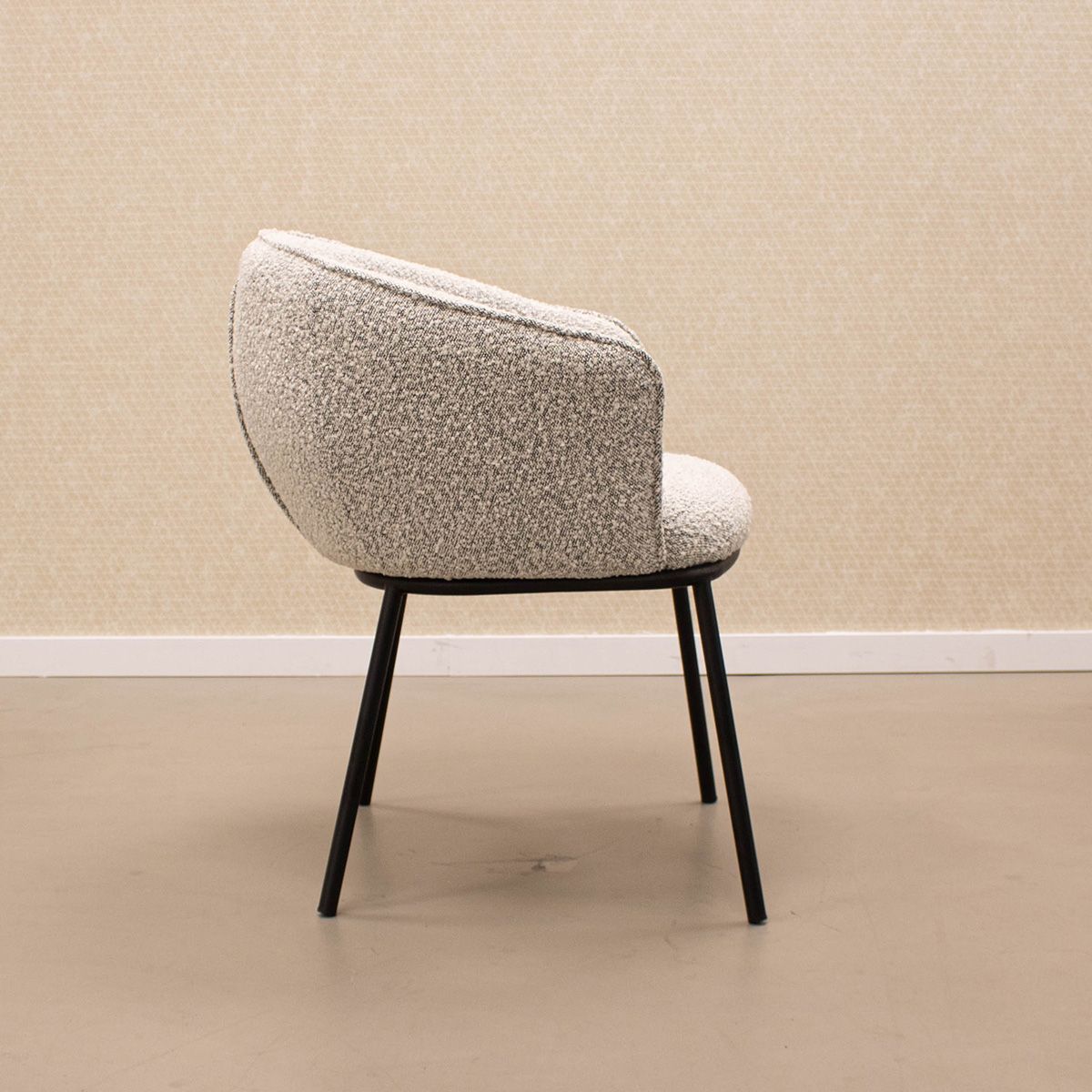 Unieke stoel bekleed met een luxe gemêleerde bouclé stof