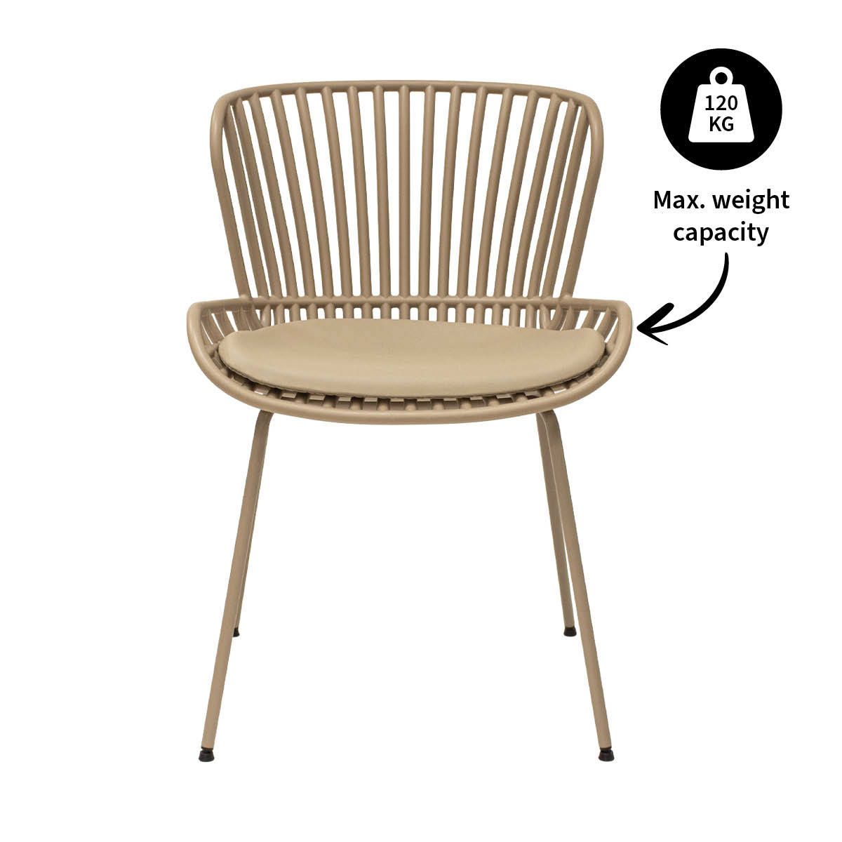 L'assise en forme de coque offre un confort optimal, tandis que le coussin en cuir PU apporte un confort supplémentaire et confère à la chaise un aspect luxueux. De plus, le coussin est facile à entretenir et à nettoyer, ce qui est idéal pour une utilisation en extérieur. Comme LOT n'a pas d'accoudoirs, vous pouvez facilement glisser la chaise sous presque toutes les tables et conserver ainsi un espace dégagé sur votre terrasse ou votre balcon. La conception ouverte rend également le lever plus facile et plus confortable.