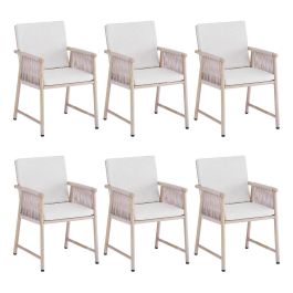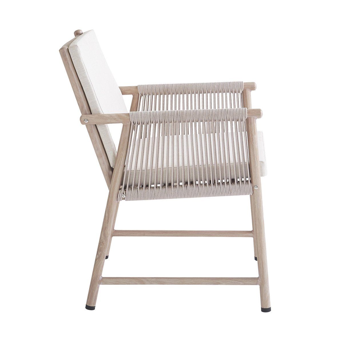 Voici la chaise de jardin Sia ! La combinaison du matériau et du design fait de Sia une chaise élégante et unique. La structure de la chaise de jardin est en métal avec une finition aspect bois et le dossier et les accoudoirs sont rembourrés avec un cordon de laçage très robuste qui se caractérise par le système « quick dry » qui permet à la chaise de sécher rapidement après la pluie. La chaise est dotée de coussins d'assise et de dossier confortables (amovibles) qui vous permettent de profiter plus longtemps du soleil, d'un barbecue ou d'un apéritif.