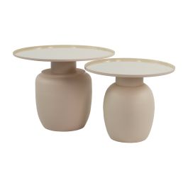 Sehen Sie sich das Couchtisch-Set Elsa an! Elsa besteht aus zwei unterschiedlich großen Tischen, die perfekt nebeneinander bzw. untereinander stehen können. Die Platte mit glänzender Beschichtung bildet eine schöne Kombination mit dem matten Metallfuß. Elsa hat eine konvexe Form, die von den Formen der echten Terrakotta-Blumentöpfe inspiriert ist.