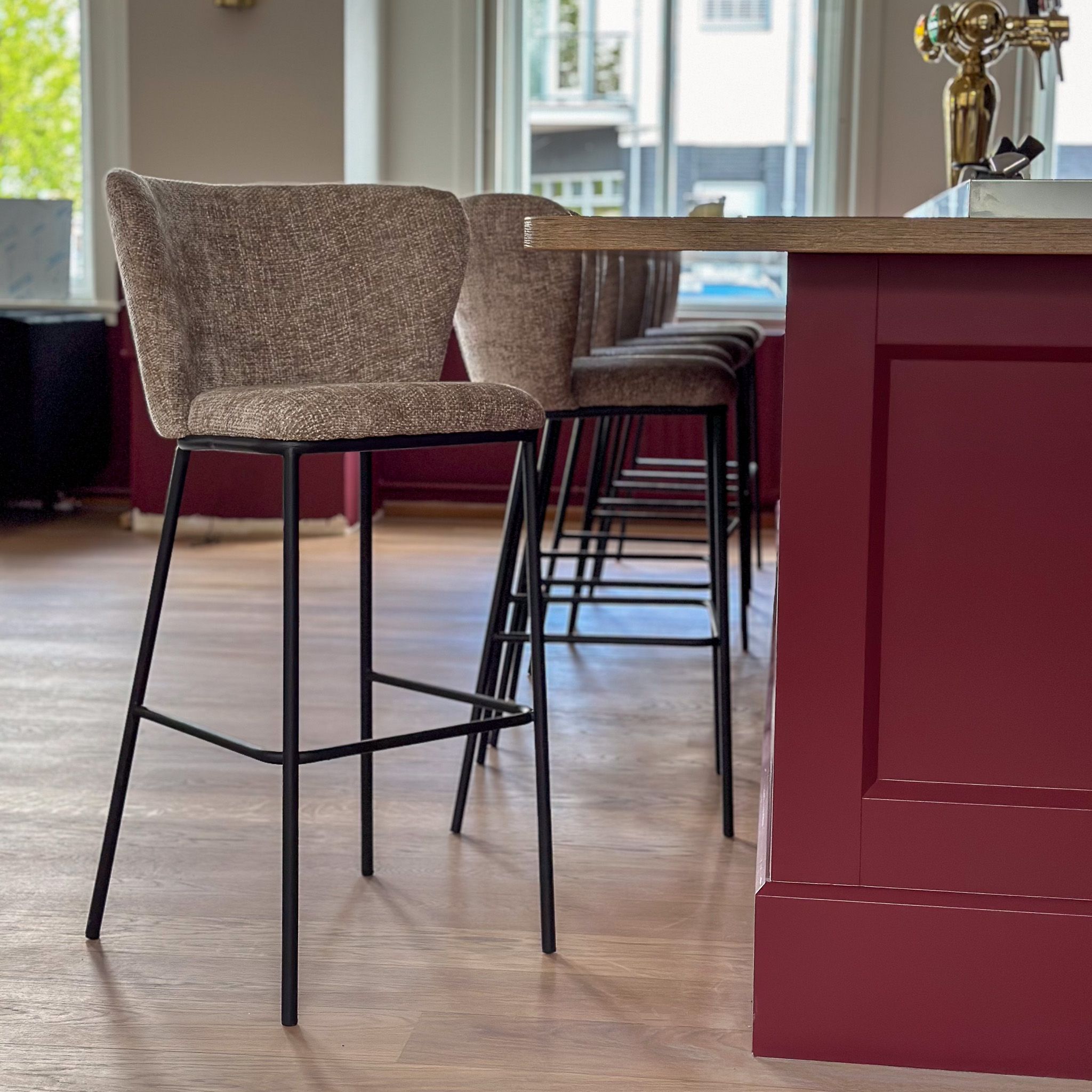 Voici notre tabouret de bar Bo ! Le tabouret de bar Bo est un choix contemporain et confortable pour tout bar ou îlot de cuisine. Recouvert d'un tissu chenille doux, ce tabouret offre non seulement une expérience d'assise douce mais ajoute également une touche d'élégance à l'espace. Le tabouret est doté d'une structure métallique robuste, d'un repose-pieds et d'un large dossier qui assure un confort d'assise optimal.