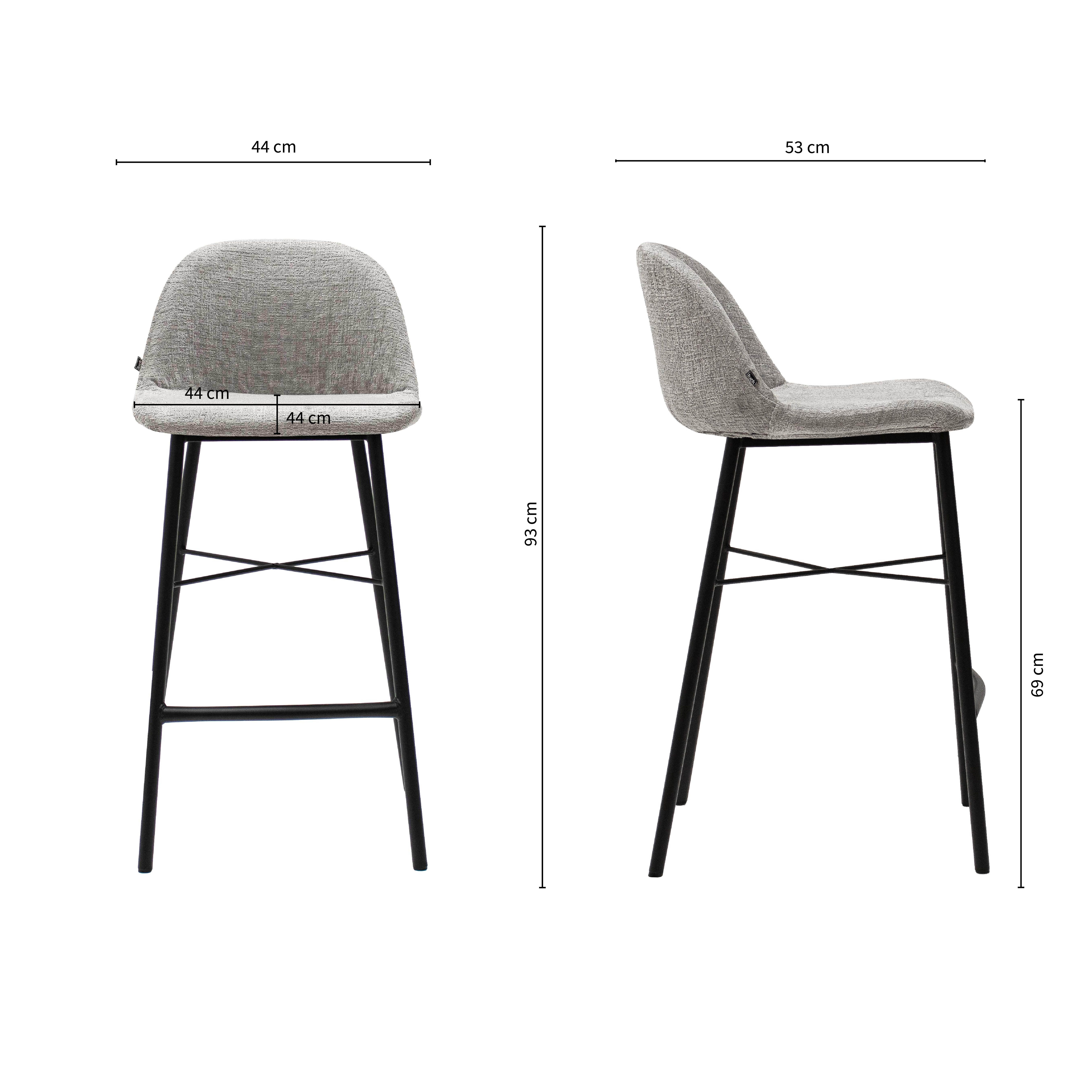 Le tabouret de bar Joel est un tabouret de bar moderne qui reprend les caractéristiques du tabouret Jeff dans un nouveau look. Le dossier confortable et l'assise fine en font un tabouret idéal pour prendre un petit déjeuner ou un verre sur l'îlot de cuisine ou au bar. La coque est recouverte d'un tissu doux qui apporte une touche chic, combiné avec la structure en métal noir, cela donne le look que vous recherchez ! Joel est disponible dans une gamme de couleurs fraîches afin que vous puissiez l'associer sans effort au reste de votre intérieur.