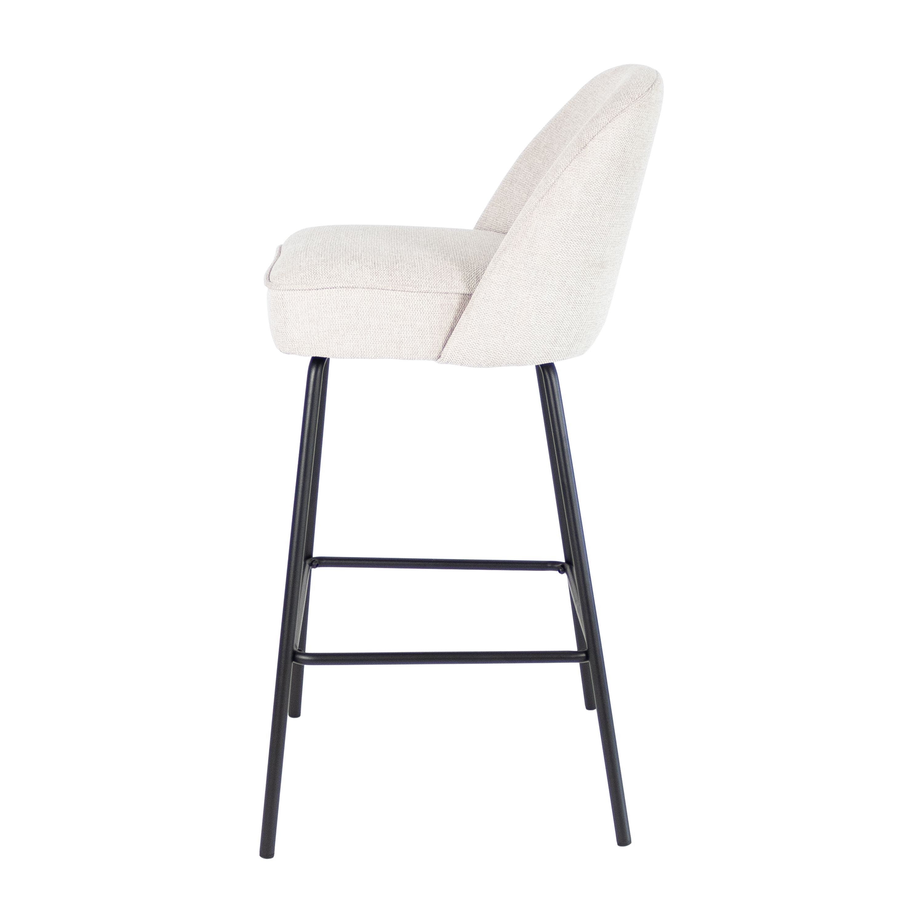 Voici notre tabouret de bar Lucy. Avec son élégant dossier rond, son assise rembourrée, sa base élégante en métal noir et son revêtement en tissu texturé, Lucy dégage un air de luxe. Ce tabouret de bar ajoute non seulement du style à votre espace, mais offre également une assise très confortable.