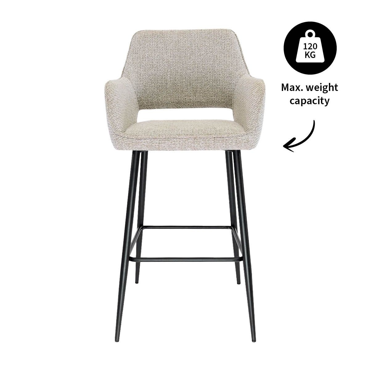 Ce qui rend YONI vraiment spécial, c'est son confort d'assise. La coque est solide, mais délicieusement molle, et grâce aux accoudoirs bien positionnés, vous pouvez rester assis au bar pendant des heures sans vous fatiguer. Le revêtement en tissu texturé mélangé lui confère un aspect chaleureux et confortable, et grâce au repose-pieds intégré, vous êtes toujours détendu. Et bonne nouvelle : YONI est disponible en plusieurs couleurs, il y a donc toujours une variante qui correspond parfaitement à votre style.