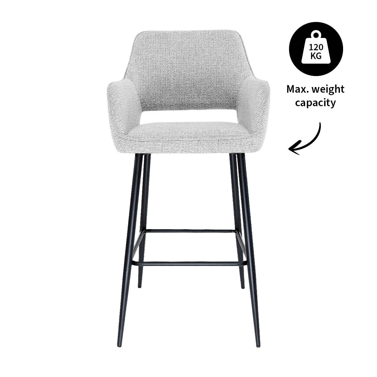 Ce qui rend YONI vraiment spécial, c'est son confort d'assise. La coque est solide, mais délicieusement molle, et grâce aux accoudoirs bien positionnés, vous pouvez rester assis au bar pendant des heures sans vous fatiguer. Le revêtement en tissu texturé mélangé lui confère un aspect chaleureux et confortable, et grâce au repose-pieds intégré, vous êtes toujours détendu. Et bonne nouvelle : YONI est disponible en plusieurs couleurs, il y a donc toujours une variante qui correspond parfaitement à votre style.
